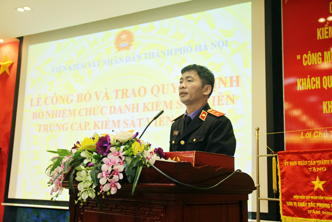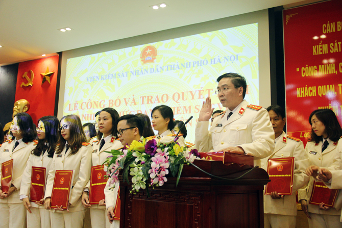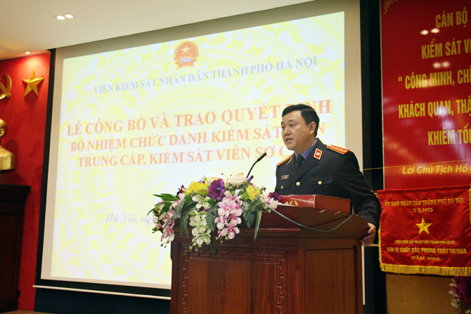 Tại buổi lễ, đồng chí Phùng Xuân Giang Trưởng phòng Tổ chức cán bộ đã công bố Quyết định của Viện trưởng Viện KSND tối cao bổ nhiệm giữ chức danh Kiểm sát viên trung cấp đối với 18 đồng chí và Quyết định bổ nhiệm kiểm sát viên sơ cấp đối với 41 đồng chí đang công tác tại các phòng nghiệp vụ và Viện KSND cấp huyện thuộc Viện KSND thành phố Hà Nội. Các Quyết định có hiệu lực từ ngày 01/2/2019.
