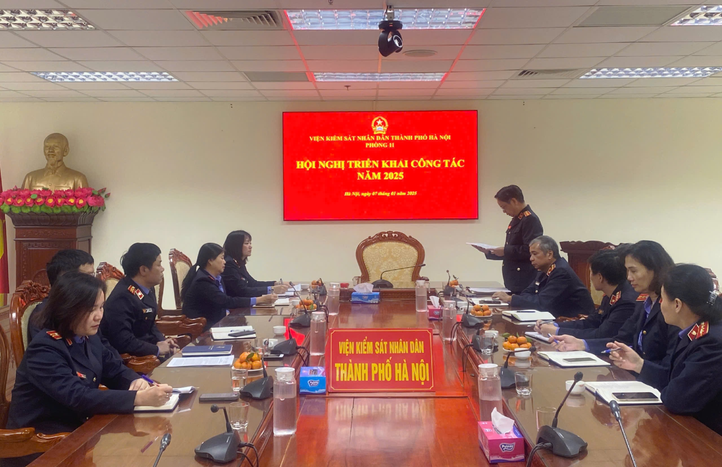 Thực hiện Chỉ thị số 01/CT-VKSTC ngày 12/12/2024 của Viện trưởng Viện KSND tối cao về công tác của ngành KSND năm 2025; Hướng dẫn số 27/HD-VKSTC ngày 25/12/2024 của Viện KSND tối cao (Vụ 12) về công tác tiếp công dân, kiểm sát và giải quyết đơn khiếu nại, tố cáo trong hoạt động tư pháp năm 2025; Kế hoạch số 05/KH-VKS ngày 26/12/2024 của Viện kiểm sát nhân dân thành phố Hà Nội về công tác của ngành Kiểm sát Thủ đô năm 2025, ngày 07/01/2025, Phòng kiểm sát và giải quyết đơn khiếu nại, tố cáo trong hoạt động tư pháp (Phòng 12) - Viện KSND thành phố Hà Nội tổ chức Hội nghị triển khai công tác năm 2025.
