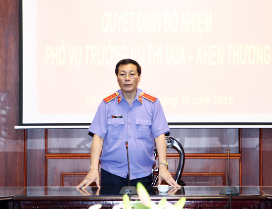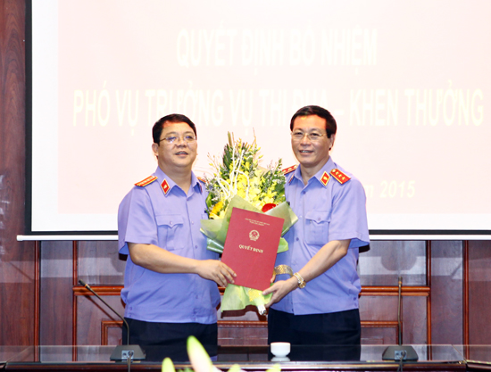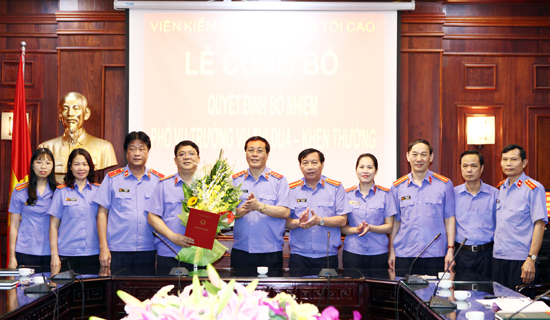 (Kiểm sát) – Chiều 12/11/2015, VKSNDTC đã tổ chức công bố và trao quyết định bổ nhiệm chức vụ Phó Vụ trưởng Vụ Thi đua – Khen thưởng. Đồng chí Nguyễn Hải Phong, Phó Viện trưởng Thường trực VKSNDTC đến dự và trao quyết định.