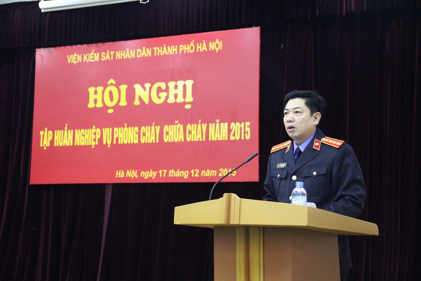 Khai mạc lớp huấn luyện, đồng chí Nguyễn Văn Dũng - Bí thư Đảng ủy, Phó viện trưởng Viện KSND thành phố Hà Nội nêu sơ bộ tình hình cháy nổ trên địa bàn thành phố hiện nay; tính nguy hiểm và những thiệt hại to lớn về người và tài sản từ các đám cháy gây ra.