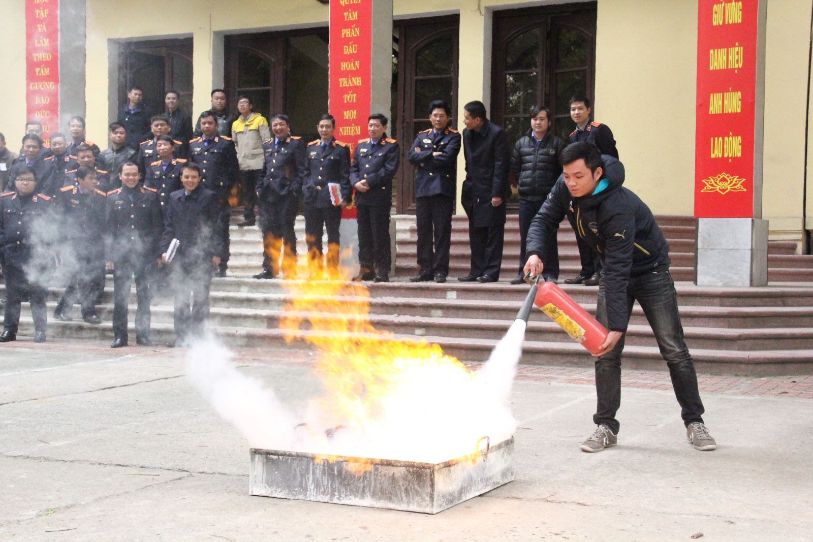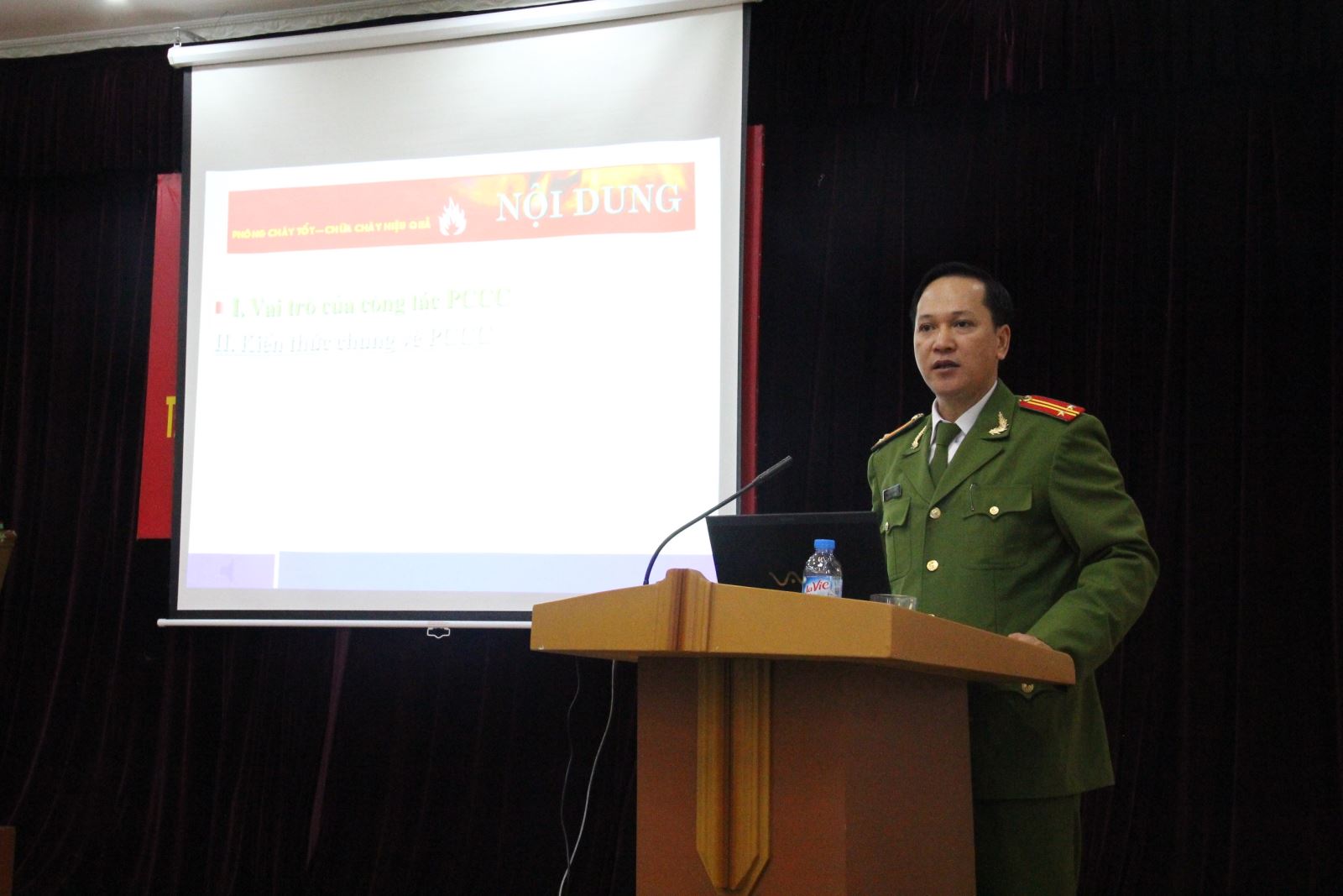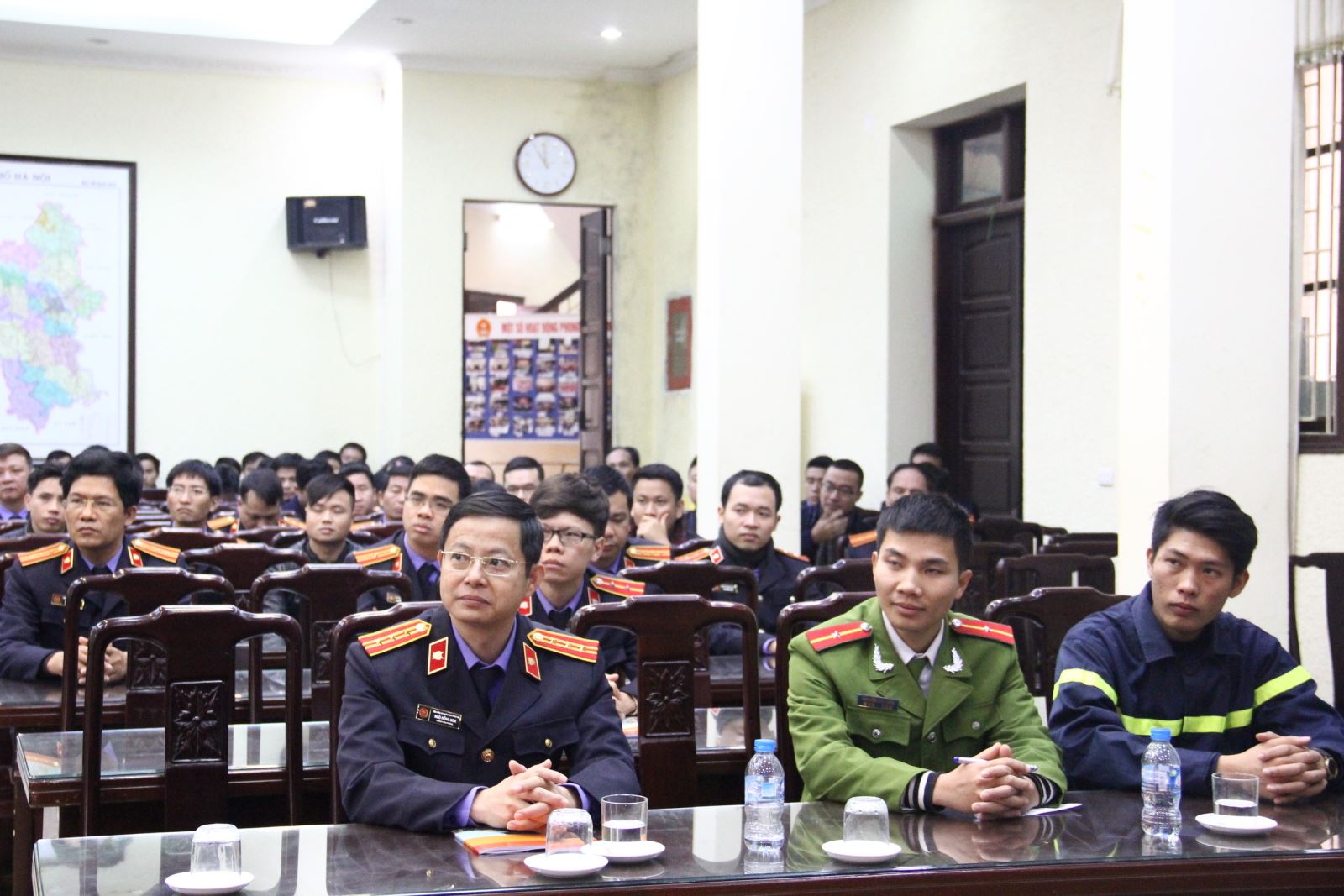 Đồng chí giảng viên đã tập trung phân tích sâu tác dụng, cách sử dụng của từng loại công cụ,bình chữa cháy đối với từng trường hợp cháy để đảm bảo an toàn và hiệu quả; Một số biện pháp phòng cháy, chữa cháy tại cơ quan, gia đình và những kỹ năng trong việc thoát hiểm…