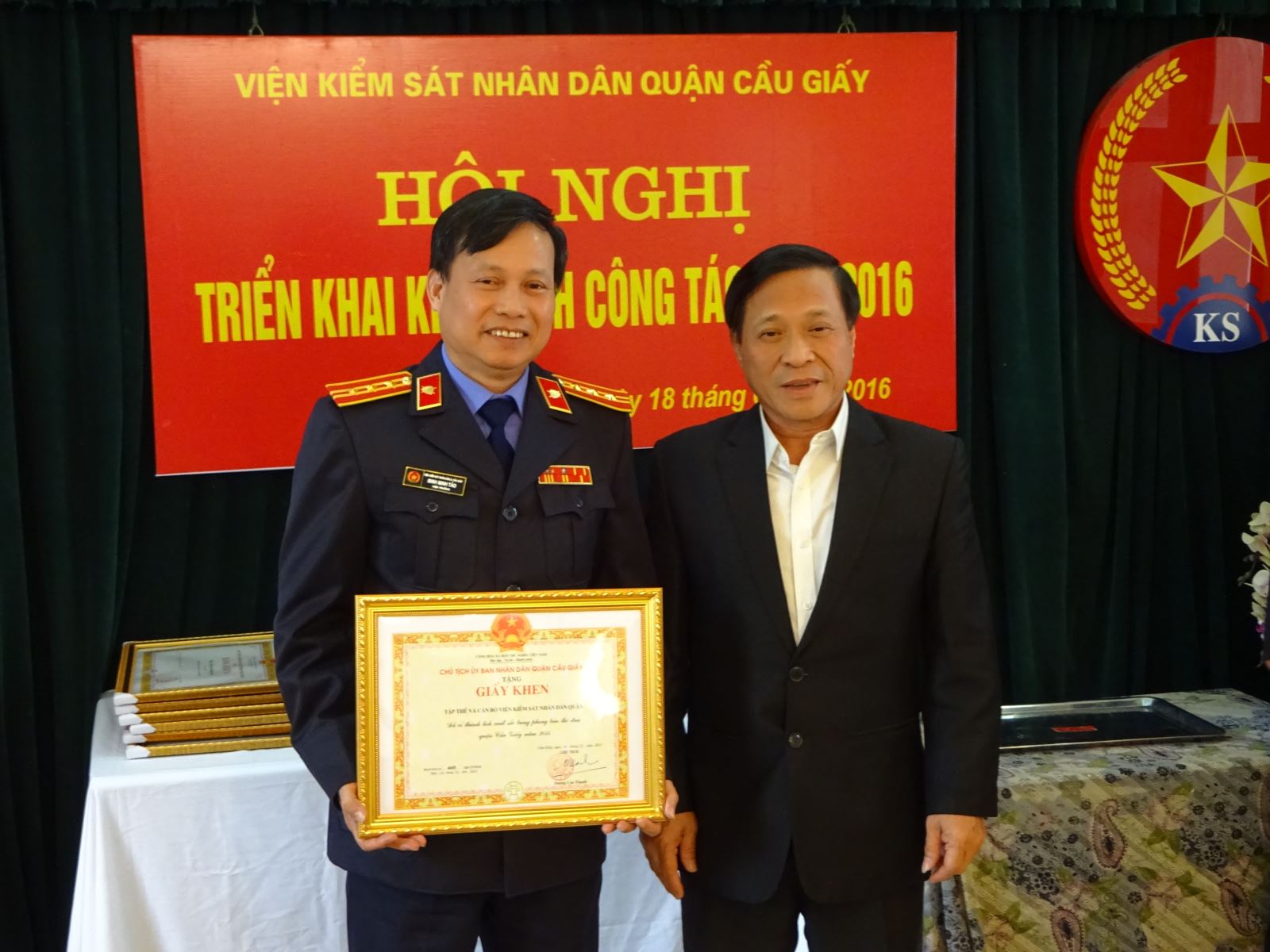 Trong không khí phấn khởi của cả nước chào đón năm mới 2016, ngày 18/01/2016, Viện KSND quận Cầu Giấy tổ chức Hội nghị triển khai nhiệm vụ công tác Kiểm sát năm 2016.