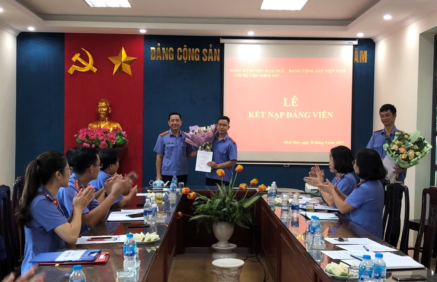 Vừa qua, ngày 30/09/2022, Chi bộ Viện KSND huyện Hoài Đức đã long trọng tổ chức Lễ kết nạp Đảng viên cho 02 đồng chí quần chúng ưu tú là đồng chí Nguyễn Hữu Kim Việt và đồng chí Phạm Ngọc Hà vào Đảng Cộng sản Việt Nam.