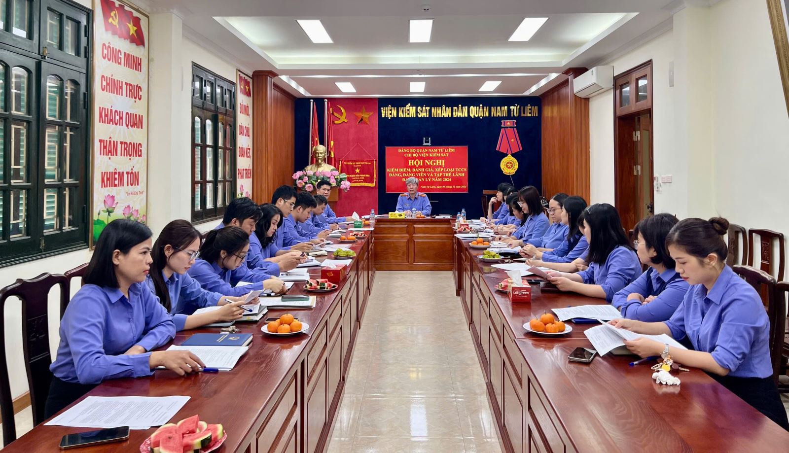 Thực hiện Quy định số 124-QĐ/TW ngày 04/10/2023 của Bộ Chính trị về kiểm điểm và đánh giá, xếp loại chất lượng hằng năm đối với tập thể, cá nhân trong hệ thống chính trị; Hướng dẫn số 25-HD/BTCTW, ngày 10/11/2023 của Ban Tổ chức Trung ương; Quy định số 05 ngày 20/11/2023 công văn số 1994-CV/QU và công văn số 2037- CV/QU của Quận ủy Nam Từ Liêm, Hà Nội về đánh giá, xếp loại chất lượng hàng năm đối với tổ chức cơ sở Đảng trực thuộc Quận ủy Nam Từ Liêm; Quy định số 06 ngày 20/11/2023 của Quận ủy Nam Từ Liêm, Hà Nội về đánh giá, xếp loại chất lượng hằng năm đối với cán bộ lãnh đạo, quản lý diện Ban thường vụ Quận ủy quản lý. Ngày 05/12/2024, Chi bộ Viện KSND quận Nam Từ Liêm đã tổ chức Hội nghị kiểm điểm, đánh giá, xếp loại tổ chức cơ sở Đảng, Đảng viên và tập thể lãnh đạo quản lý năm 2024.
