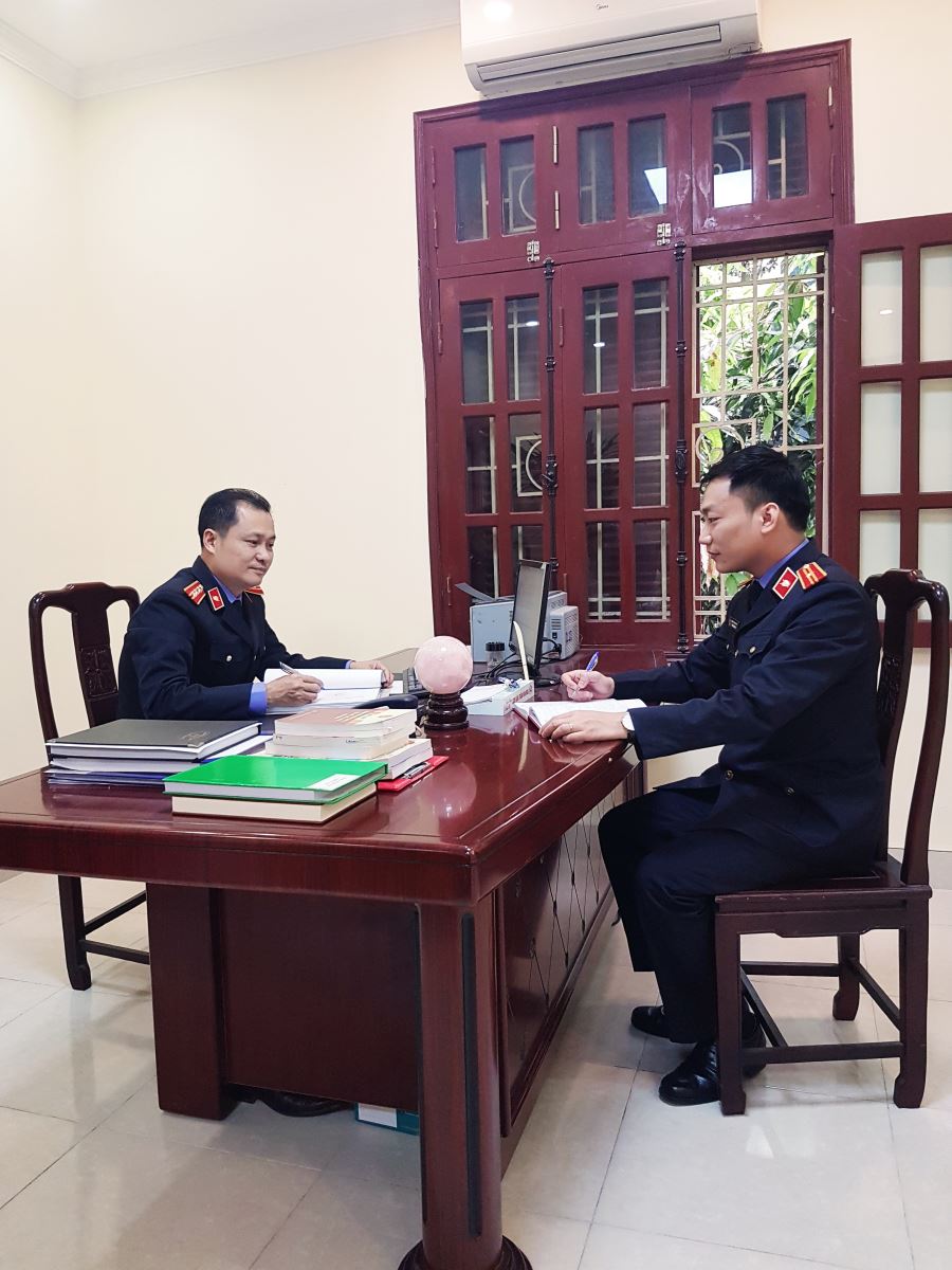 Kiểm sát viên báo cáo nội dung vụ án với Lãnh đạo Viện KSND quận Thanh Xuân