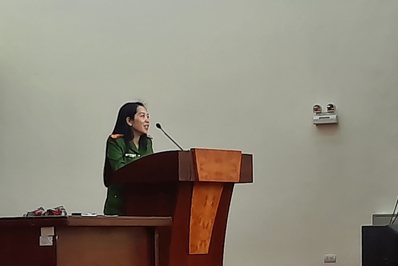 Giáo viên chủ nhiệm Trung tá Nguyễn Thị Xuân Thu - Giảng viên Học viện Cảnh sát nhân dân phát biểu tại lớp học