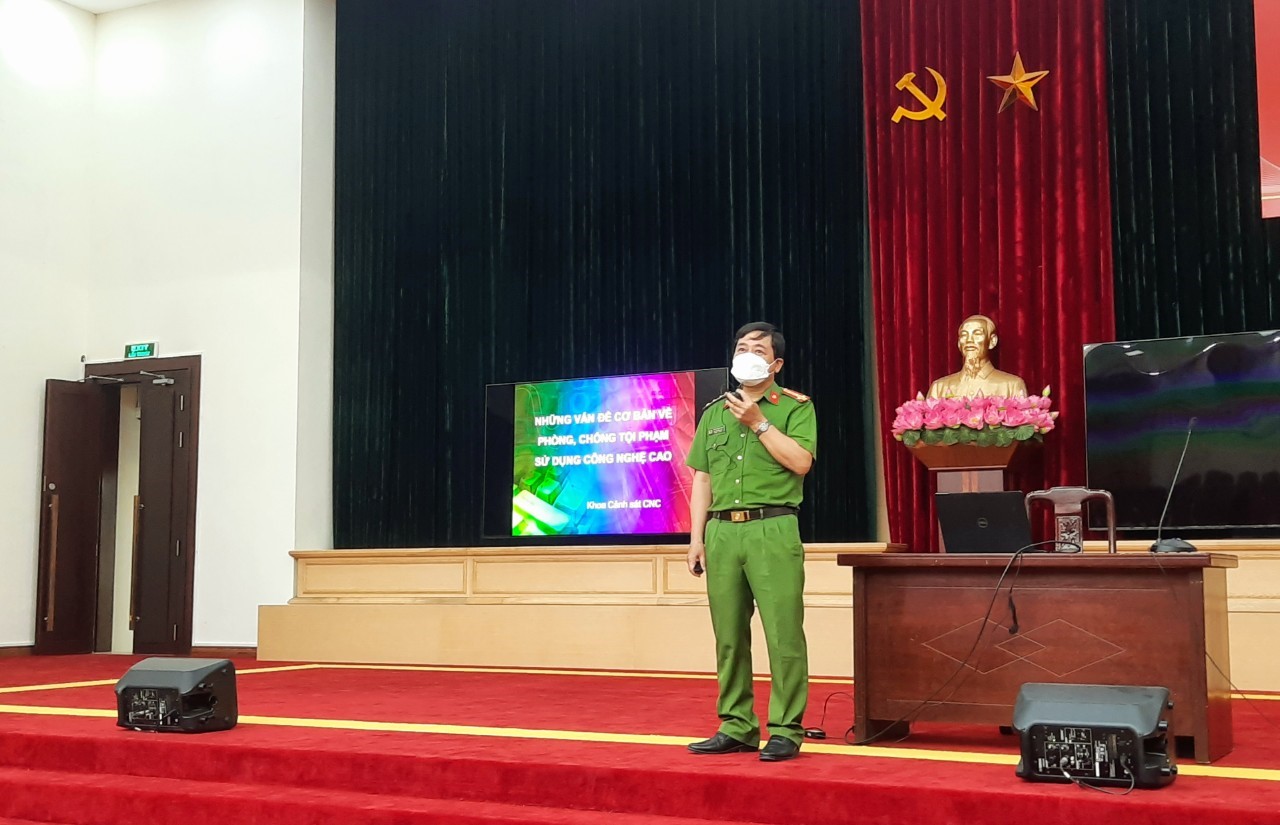 Tại buổi học đầu tiên, học viên được trao đổi nội dung “Những vẫn đề cơ bản về tội phạm sử dụng công nghệ cao” do đồng chí Đại tá, PGS.TS Trần Cảnh Hưng - Giảng viên Học viện Cảnh sát nhân dân truyền đạt.