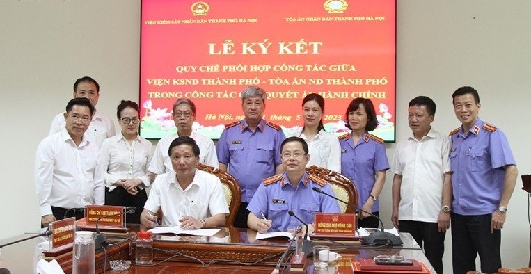 Ngày 11/5/2023, Liên ngành Viện KSND và TAND thành phố Hà Nội đã tổ chức Hội nghị đánh giá kết quả công tác giải quyết án hành chính từ năm 2017 đến nay và lễ ký kết Quy chế phối hợp trong công tác giải quyết án hành chính giữa Viện KSND và TAND thành phố Hà Nội.