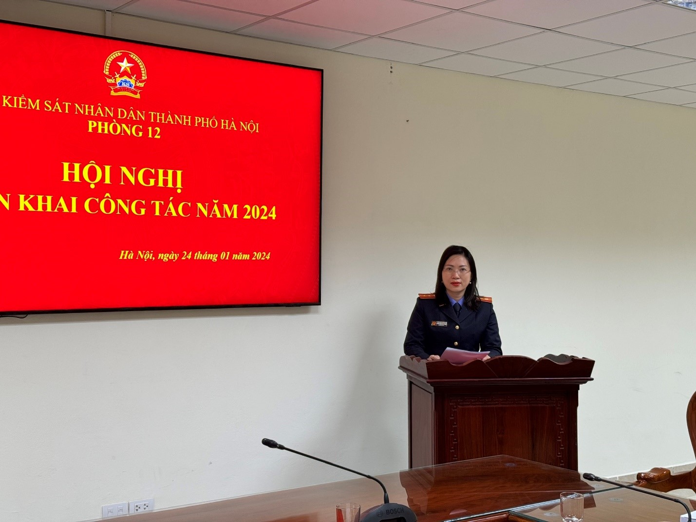 Phát biểu chỉ đạo Hội nghị, đồng chí Nguyễn Thanh Sơn, Phó Viện trưởng Viện KSND thành phố Hà Nội đánh giá cao những kết quả đạt được của Phòng 12 trong năm 2023. Đồng thời, chỉ đạo đơn vị tiếp tục phát huy các thành tích đã đạt được trong năm 2023, thực hiện tốt các nhiệm vụ tại Chương trình công tác năm 2024 và thực hiện tốt một số nhiệm vụ trọng tâm sau:
