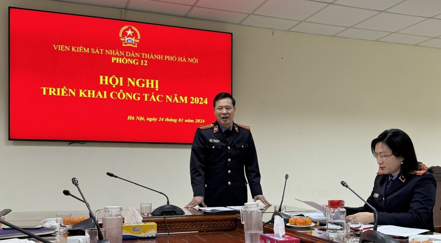 Thực hiện Chỉ thị số 01/CT-VKSTC ngày 18/12/2023 của Viện trưởng Viện KSND tối cao về công tác của ngành Kiểm sát nhân dân năm 2024; Chỉ thị số 04/CT-VKSTC ngày 28/7/2017 của Viện trưởng Viện KSND tối cao về tăng cường công tác tiếp công dân, giải quyết khiếu nại, tố cáo trong hoạt động tư pháp, Hướng dẫn số 25/HD-VKSTC ngày 27/12/2023 của Viện KSND tối cao (Vụ 12) về công tác tiếp công dân, kiểm sát và giải quyết đơn khiếu nại, tố cáo trong hoạt động tư pháp năm 2024; Kế hoạch số 09/KH-VKS ngày 15/01/2024 của Viện kiểm sát nhân dân thành phố Hà Nội về công tác của ngành Kiểm sát Thủ đô năm 2024.  Ngày 24/01/2024, Phòng kiểm sát và giải quyết đơn khiếu nại, tố cáo trong hoạt động tư pháp (Phòng 12) tổ chức Hội nghị triển khai công tác kiểm sát năm 2024.