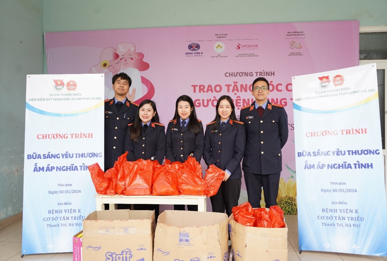 Thực hiện chủ đề công tác Đoàn và phong trào thanh niên năm 2024 "Năm Thanh niên tình nguyện", sáng ngày 30/01/2024, Đoàn thanh niên VKSND thành phố Hà Nội đã tổ chức chương trình “Bữa sáng yêu thương – ấm áp nghĩa tình với mong muốn giúp đỡ và động viên tinh thần cho những bệnh nhân đang điều trị tại Bệnh viện K – cơ sở Tân Triều.
