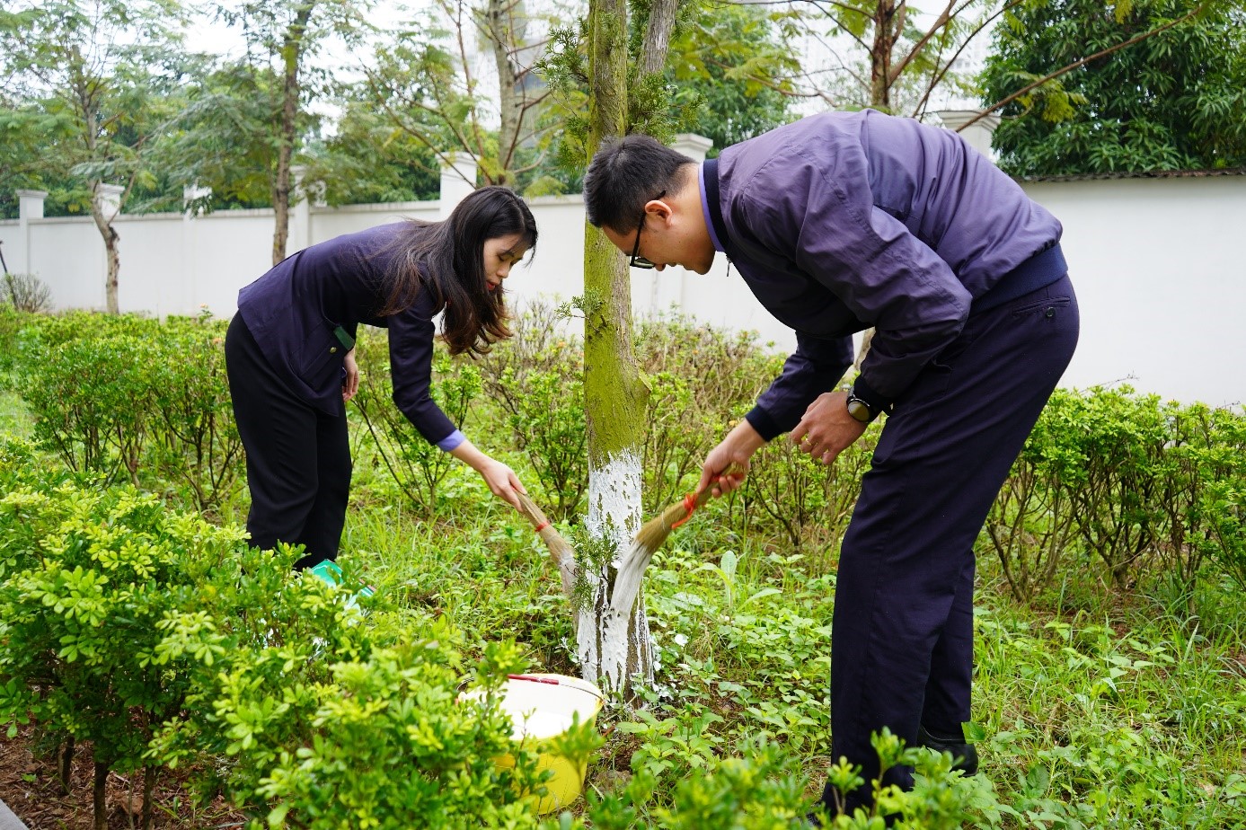Thấm thía lời dạy của Bác Hồ về sự cần thiết, ý nghĩa to lớn của việc bảo vệ, giữ gìn cảnh quan môi trường. Hơn 30 lượt công đoàn viên, thanh niên đã tham gia quét vôi các gốc cây xanh, thu gom nhặt rác,… trong khuôn viên trụ sở cơ quan.