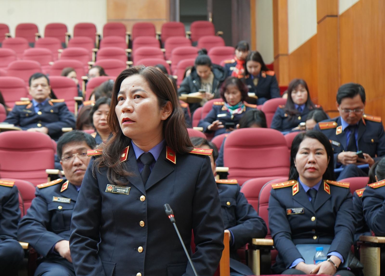 Đồng chí Phạm Tú Anh - Trưởng phòng 7 phát biểu tại Hội nghị giao ban