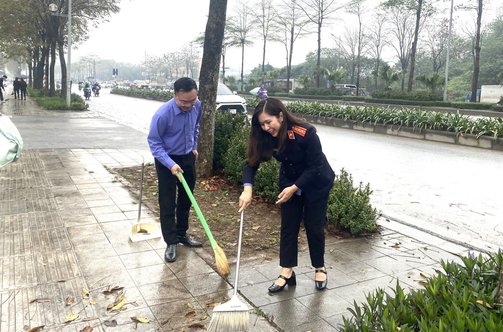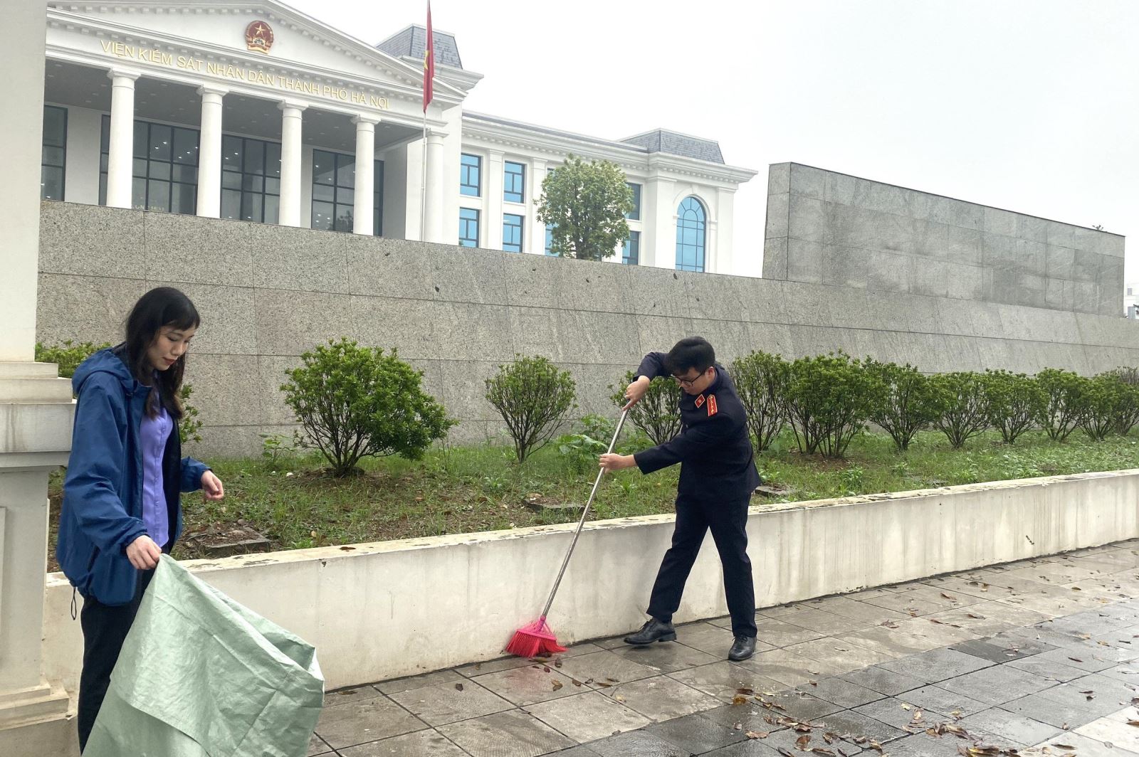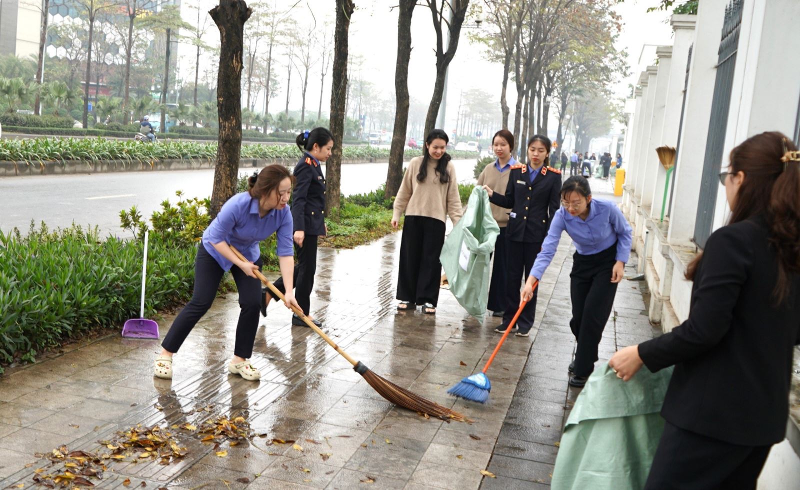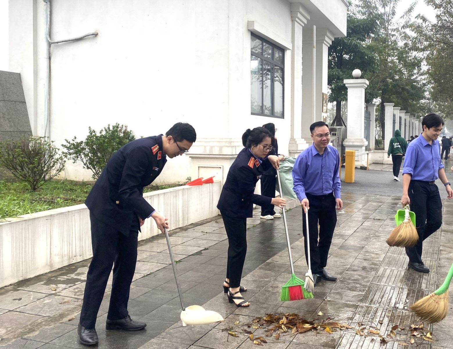Đoàn viên tích cực quét dọn vệ sinh, thu gom, phân loại rác thải tại khu vực xung quanh khuôn viên cơ quan