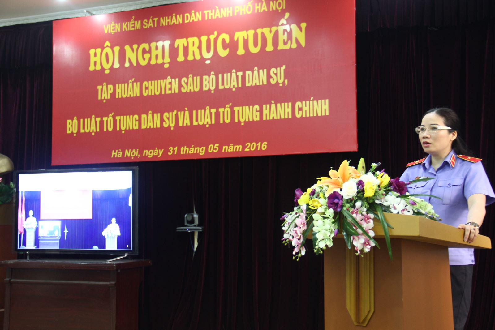 Thực hiện Kế hoạch số 30/KH-VKS-VP ngày 15/3/2016 của Viện KSND thành phố Hà Nội về triển khai thi hành 07 đạo luật có liên quan đến ngành Kiểm sát nhân dân. Ngày 31 tháng 5 năm 2016, Viện KSND thành phố Hà Nộị đã tổ chức hội nghị trực tuyến tập huấn chuyên sâu về Bộ luật dân sự, Bộ luật tố tụng dân sự, và Luật tố tụng hành chính cho VKS hai cấp thành phố Hà Nội. Hội nghị được truyền trực tiếp tại 31 điểm cầu.