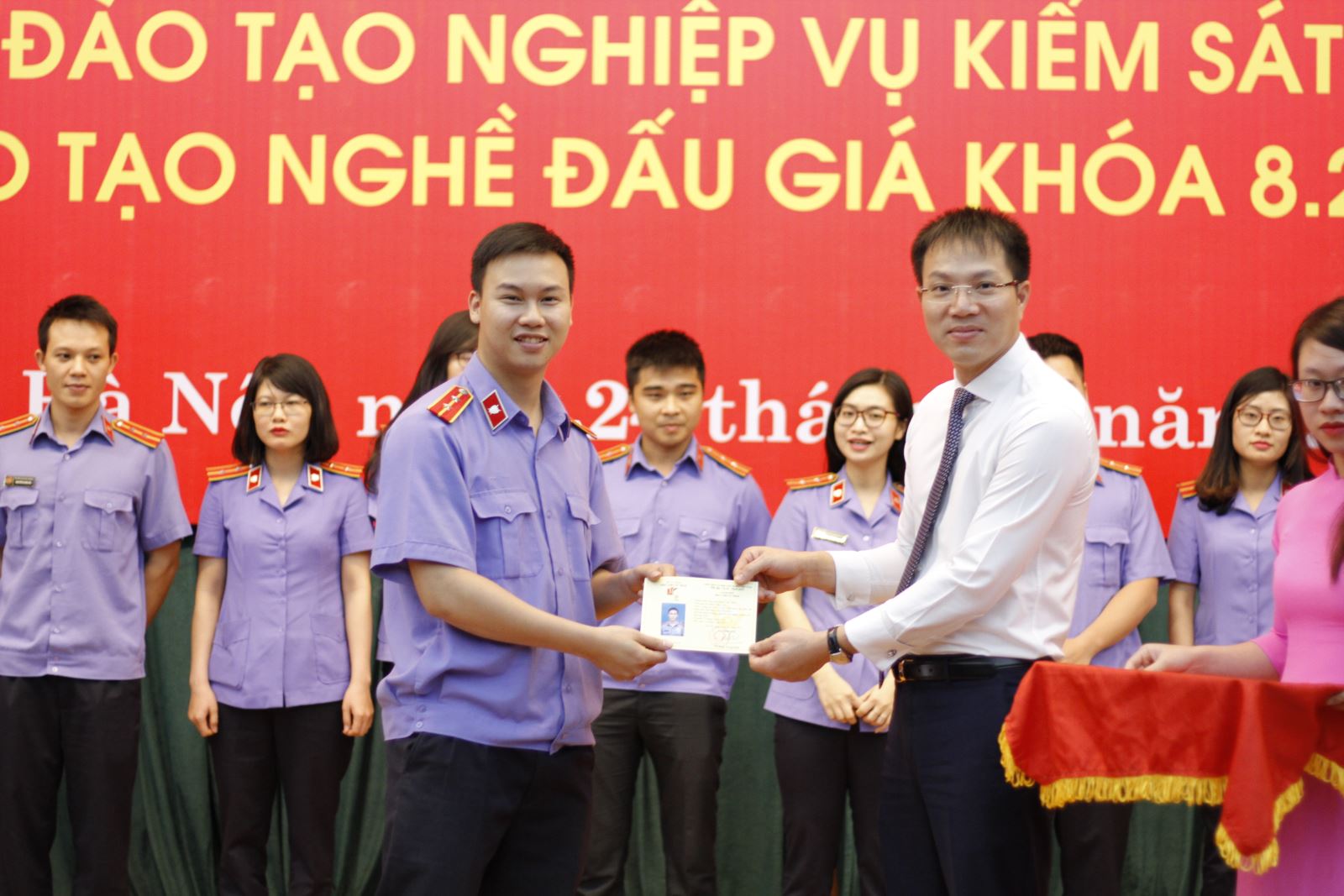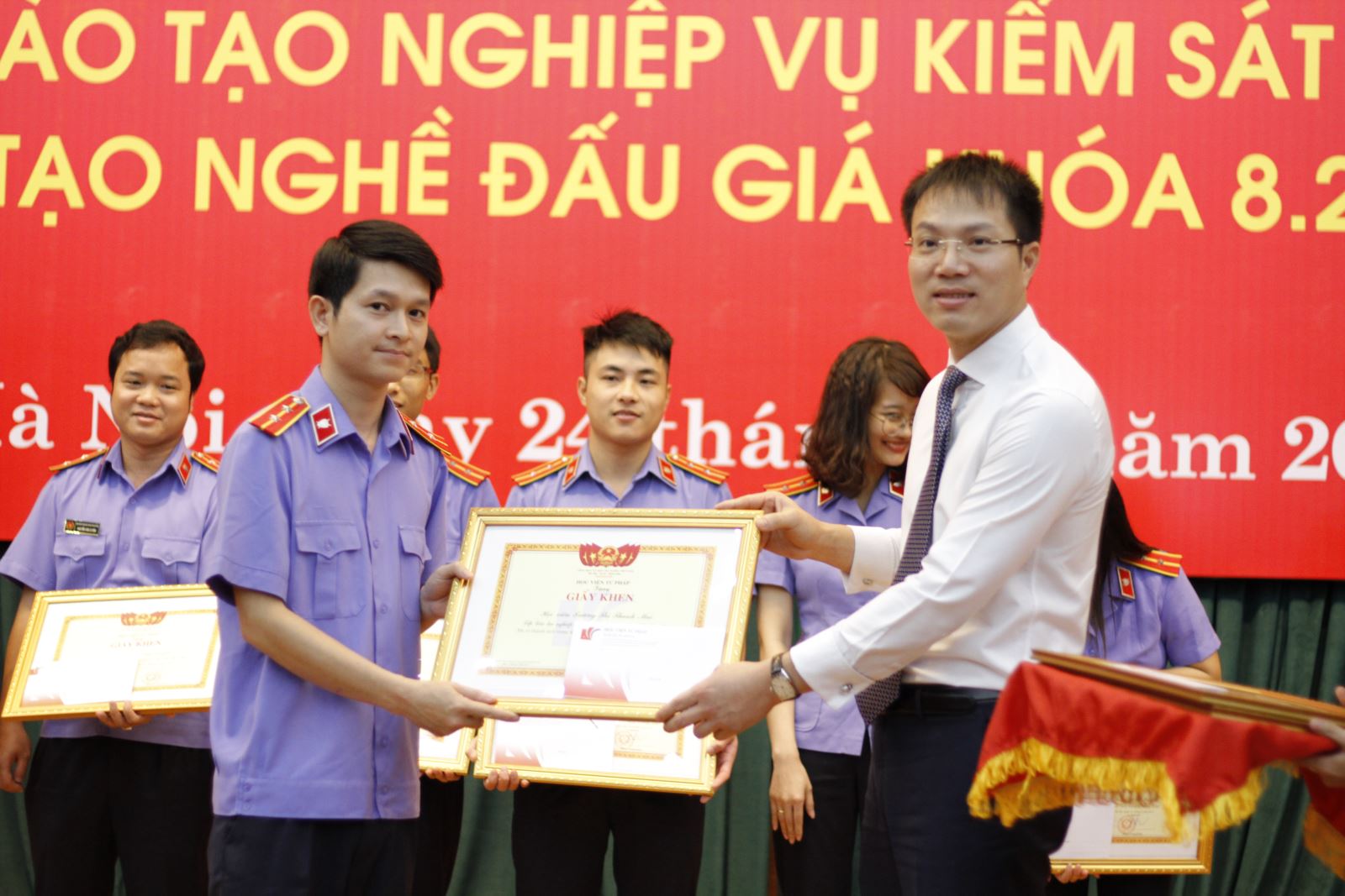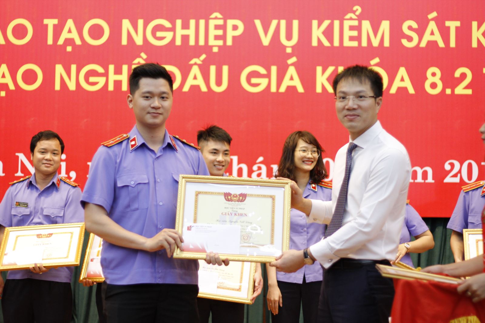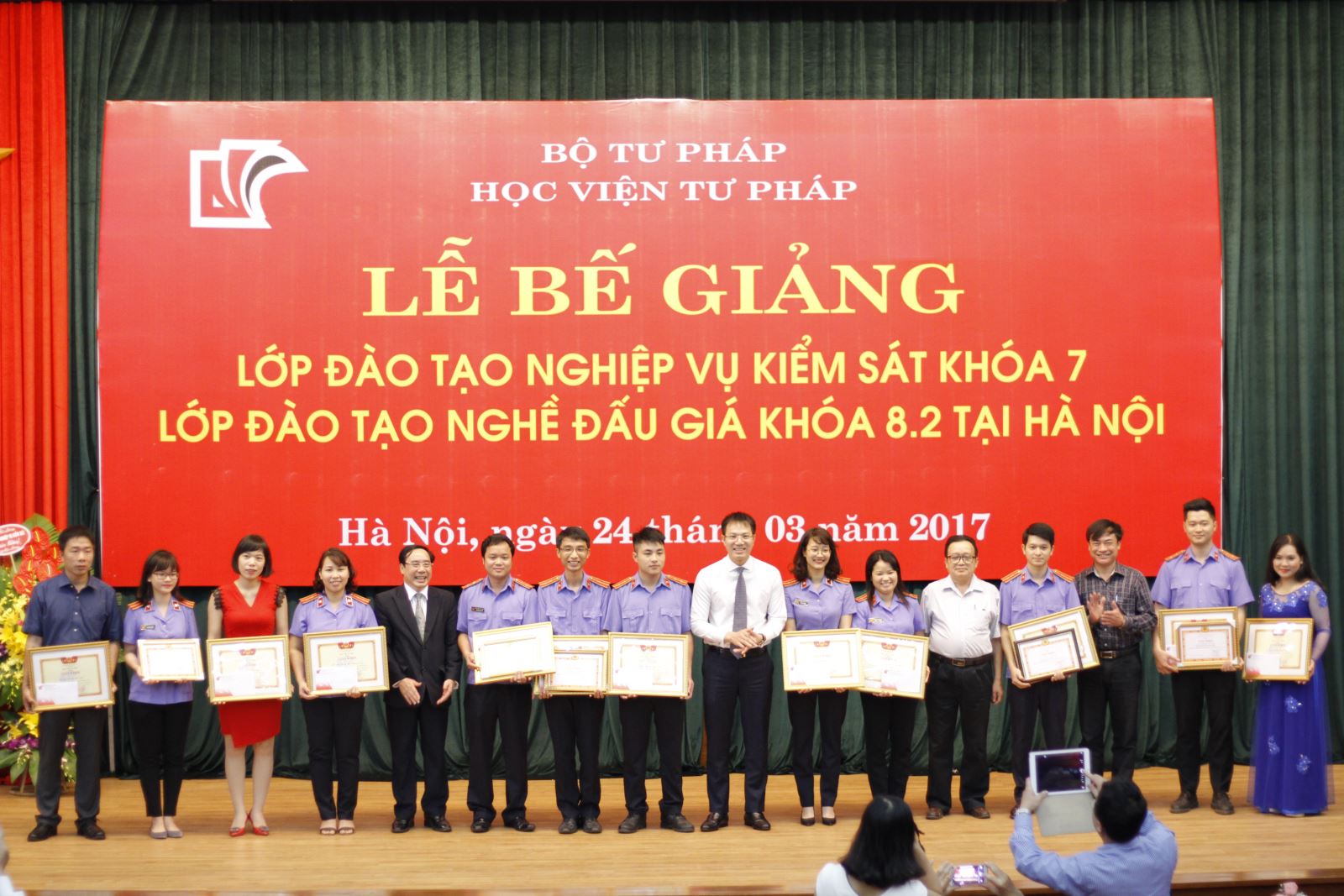 Thay mặt Ban giám đốc, TS. Đoàn Trung Kiên - quyền Giám đốc Học viện tư pháp đã trao tặng Giấy khen và Giấy chứng nhận tốt nghiệp cho các học viên. Đồng chí cũng chúc mừng, ghi nhận sự phấn đấu rèn luyện của thầy và trò kiểm sát khóa VII trong suốt 11 tháng vừa qua. Đồng chí tin tưởng những học viên tốt nghiệp ngày hôm nay sẽ là lực lượng cán bộ giỏi, đáp ứng được yêu cầu cải cách tư pháp để bổ sung cho bộ máy của ngành Kiểm sát. Đồng chí mong rằng khi trở về vị trí công tác, các học viên tiếp tục trau dồi, rèn luyện và phát huy được những sở trường, kiến thức đã học tập để hoàn thành tốt công việc, nhiệm vụ của mình cũng như ngày càng phát triển, trưởng thành trong công tác./.