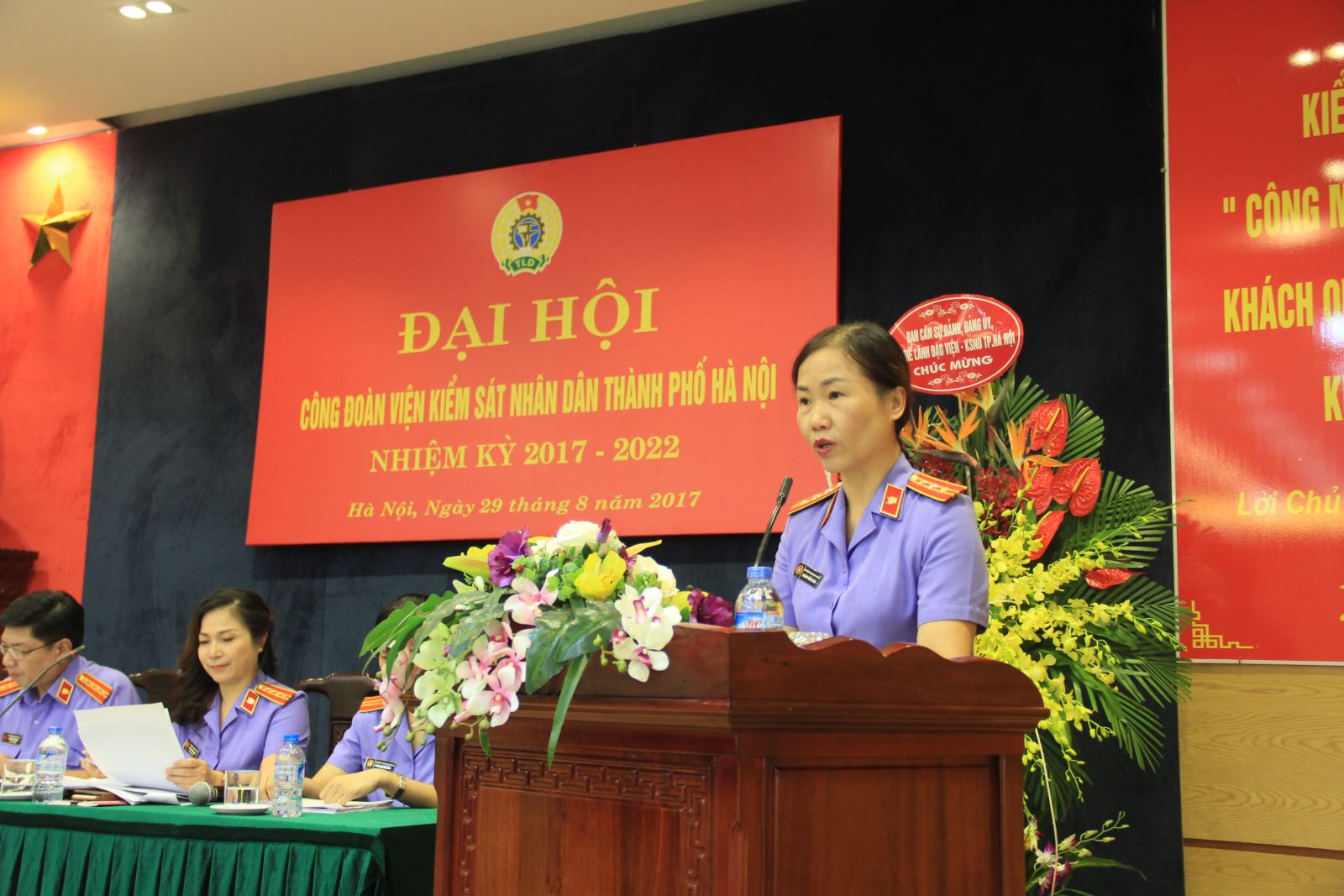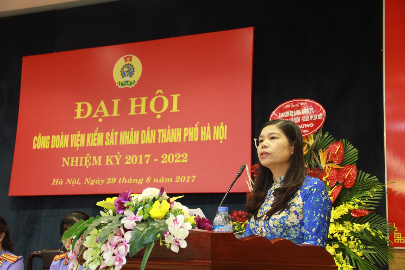 Phát biểu chỉ đạo Đại hội, đ/c Đặng Thị Phương Hoa - Phó Chủ tịch Liên đoàn Lao động thành phố, Chủ tịch Công đoàn viên chức thành phố khẳng định, Công đoàn Viện KSND thành phố nhiệm kỳ 2012-2017 đã có nhiều đổi mới trong hoạt động, triển khai toàn diện các hoạt động do công đoàn cấp trên phát động; chăm lo và quan tâm tới đời sống của cán bộ, công chức, người lao động. Đồng chí đề nghị, trong nhiệm kỳ tiếp theo, Ban cán sự Đảng, Đảng ủy, lãnh đạo Viện KSND thành phố Hà Nội tiếp tục tạo điều kiện để Ban chấp hành khóa mới hoạt động hiệu quả hơn hơn; chăm lo đời sống, bố trí công việc của cán bộ, công chức, người lao động phù hợp. Nâng cao công tác giáo dục Công đoàn viên học tập các nghị quyết của Đảng, tăng cường kỷ cương kỷ luật lao động; tổ chức tốt phong trào thi đua, nâng cao chất lượng giải quyết án; đổi mới hình thức và nâng cao chất lượng hoạt động của Công đoàn nhiệm kỳ 2017-2022.