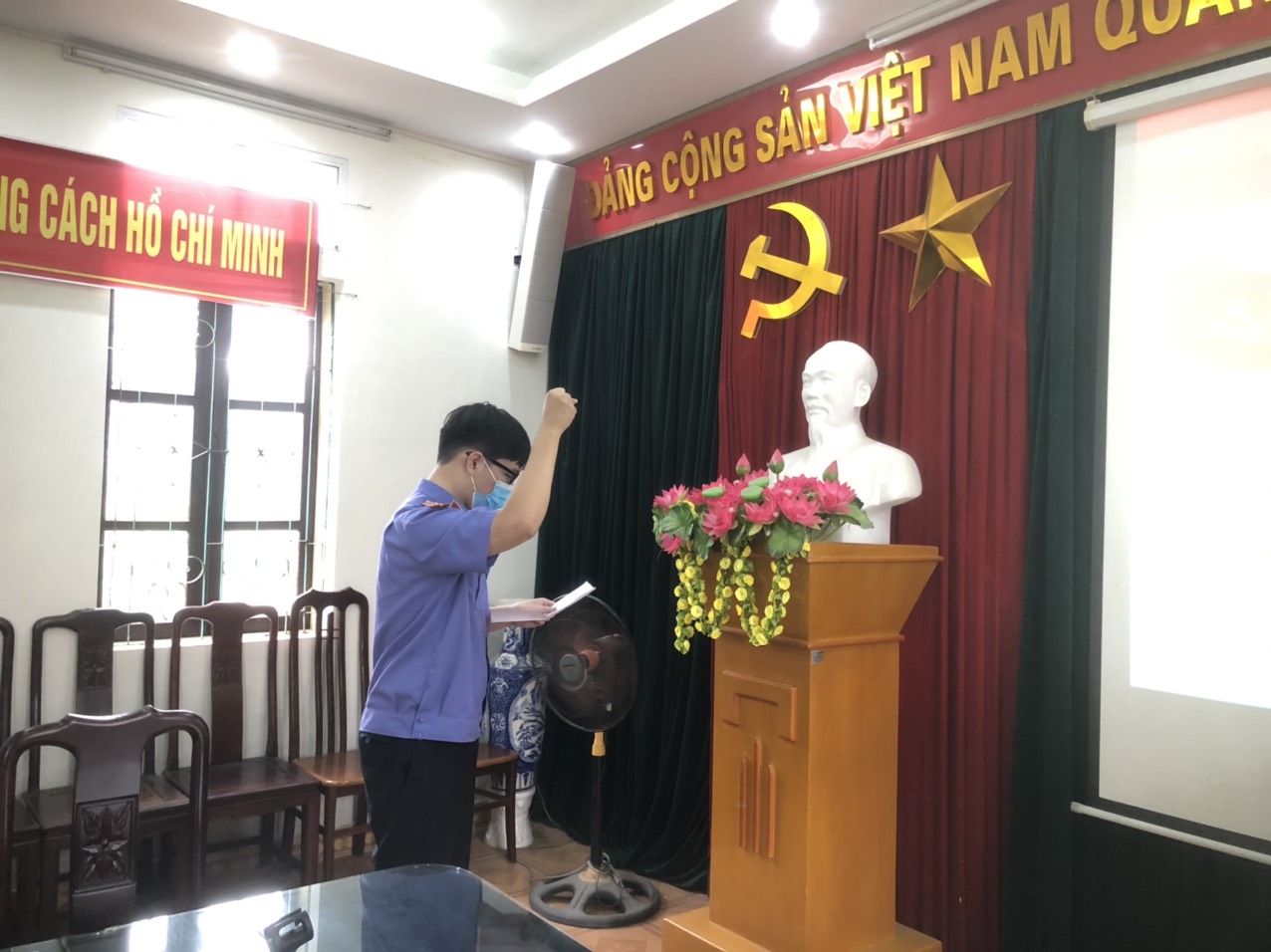 Đến dự buổi Lễ có đồng chí Phan Văn Đức - Bí thư Chi bộ, Viện trưởng Viện KSND huyện Quốc Oai, Công đoàn Viện KSND huyện cùng toàn thể đảng viên trong Chi bộ. Lễ kết nạp được diễn ra trong không khí trang nghiêm, đúng trình tự, thủ tục của Điều lệ Đảng và tuân thủ các quy định về phòng, chống dịch Covid-19. Sau nghi thức chào cờ, đồng chí Phan Văn Đức - Bí thư Chi bộ đọc Quyết định kết nạp và trao Quyết định kết nạp Đảng viên cho đồng chí Đoàn Hữu Nam.