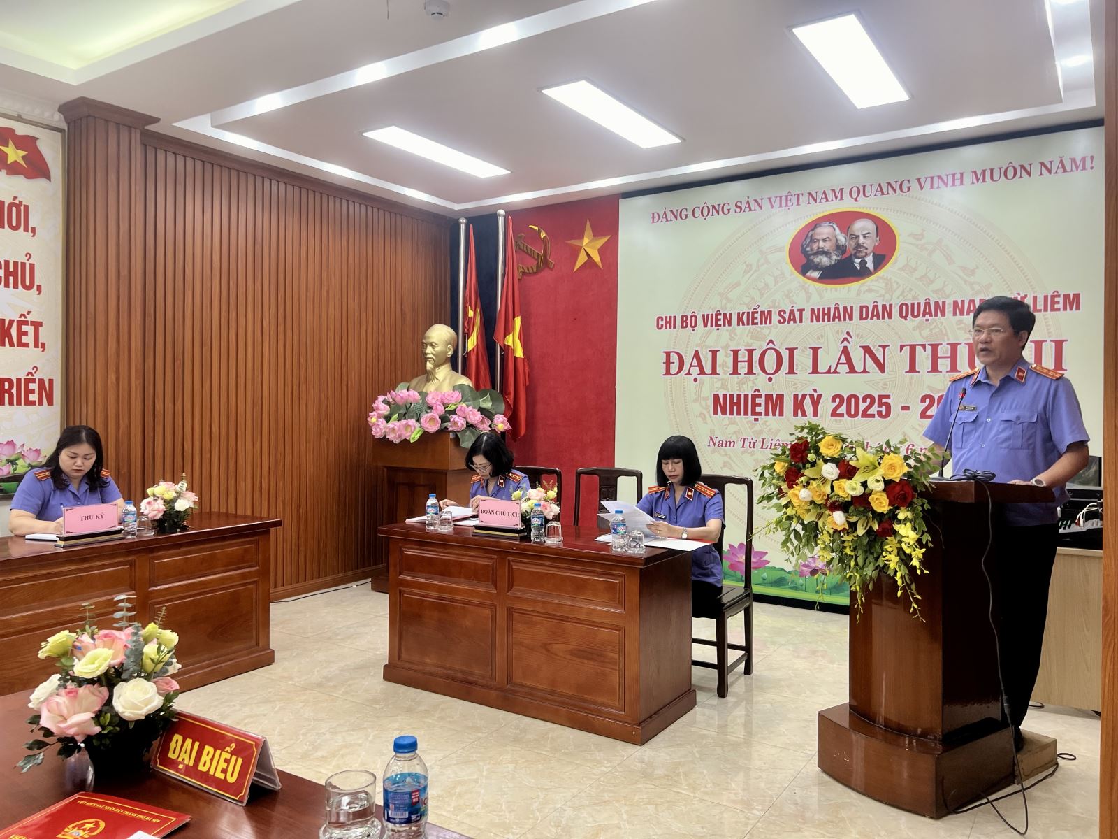 Phát biểu khai mạc Đại hội, đồng chí Đỗ Hoàng Tân – Phó Bí thư Chi bộ, Phó Viện trưởng Viện KSND quận Nam Từ Liêm nhấn mạnh: Đại hội là dịp quan trọng để toàn thể đảng viên cùng nhìn nhận, đánh giá khách quan, toàn diện kết quả thực hiện Nghị quyết nhiệm kỳ vừa qua; đồng thời xác định phương hướng, mục tiêu và giải pháp trọng tâm nhằm tiếp tục nâng cao năng lực lãnh đạo, sức chiến đấu của Chi bộ trong giai đoạn mới. Thay mặt đoàn Chủ tịch, đồng chí Đỗ Hoàng Tân- trình bày Báo cáo chính trị, kiểm điểm Chi ủy chi bộ nhiệm kỳ 2020-2025.