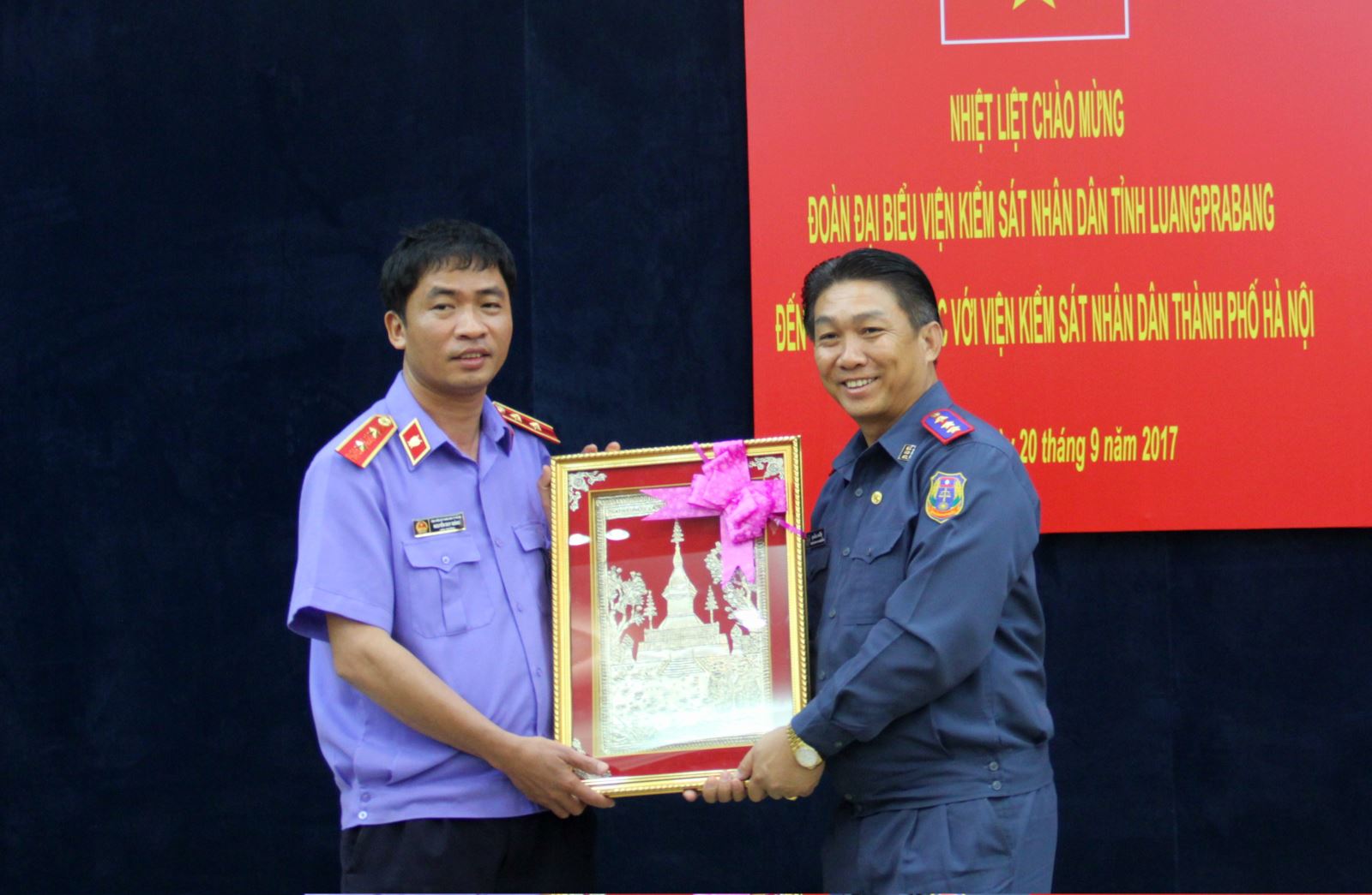 Lãnh đạo Viện KSND thành phố Hà Nội và Lãnh đạo Viện KSND tỉnh Luangprabang tặng quà lưu niệm