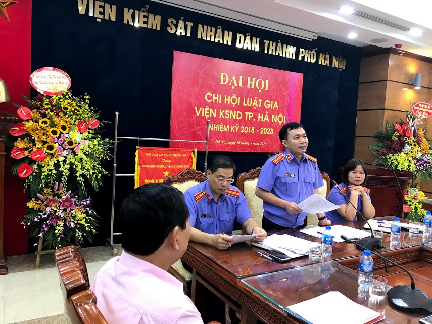 Thực hiện Hướng dẫn số 148/HD-HLGHN/2018 của Hội Luật gia thành phố Hà Nội hướng dẫn tổ chức Đại hội Hội Luật gia quận, huyện, thị xã, Chi hội Luật gia trực thuộc tiến tới Đại hội Đại biểu Hội Luật gia thành phố Hà Nội lần thứ VII (nhiệm kỳ 2018 – 2023), ngày 10/9/2018, được sự đồng ý của Ban Thường vụ Hội Luật gia thành phố Hà Nội, Ban Cán sự Đảng,Đảng ủy Viện KSND thành phố Hà Nội, Chi hội Luật gia Viện KSND thành phố Hà Nội tổ chức Đại hội đại biểu Chi hội Luật gia Viện KSND thành phố Hà Nội nhiệm kỳ 2018 – 2023. Đại hội nhằm đánh giá kết quả công tác của Chi hội nhiệm kỳ 2011 – 2015 kéo dài 2018, xây dựng phương hướng, nhiệm vụ nhiệm kỳ 2018 – 2023.