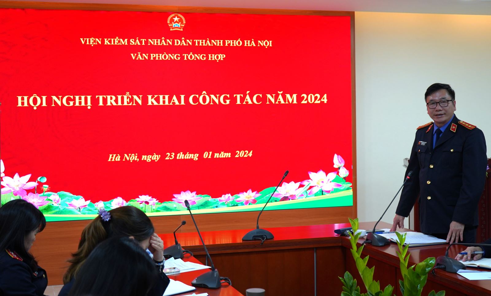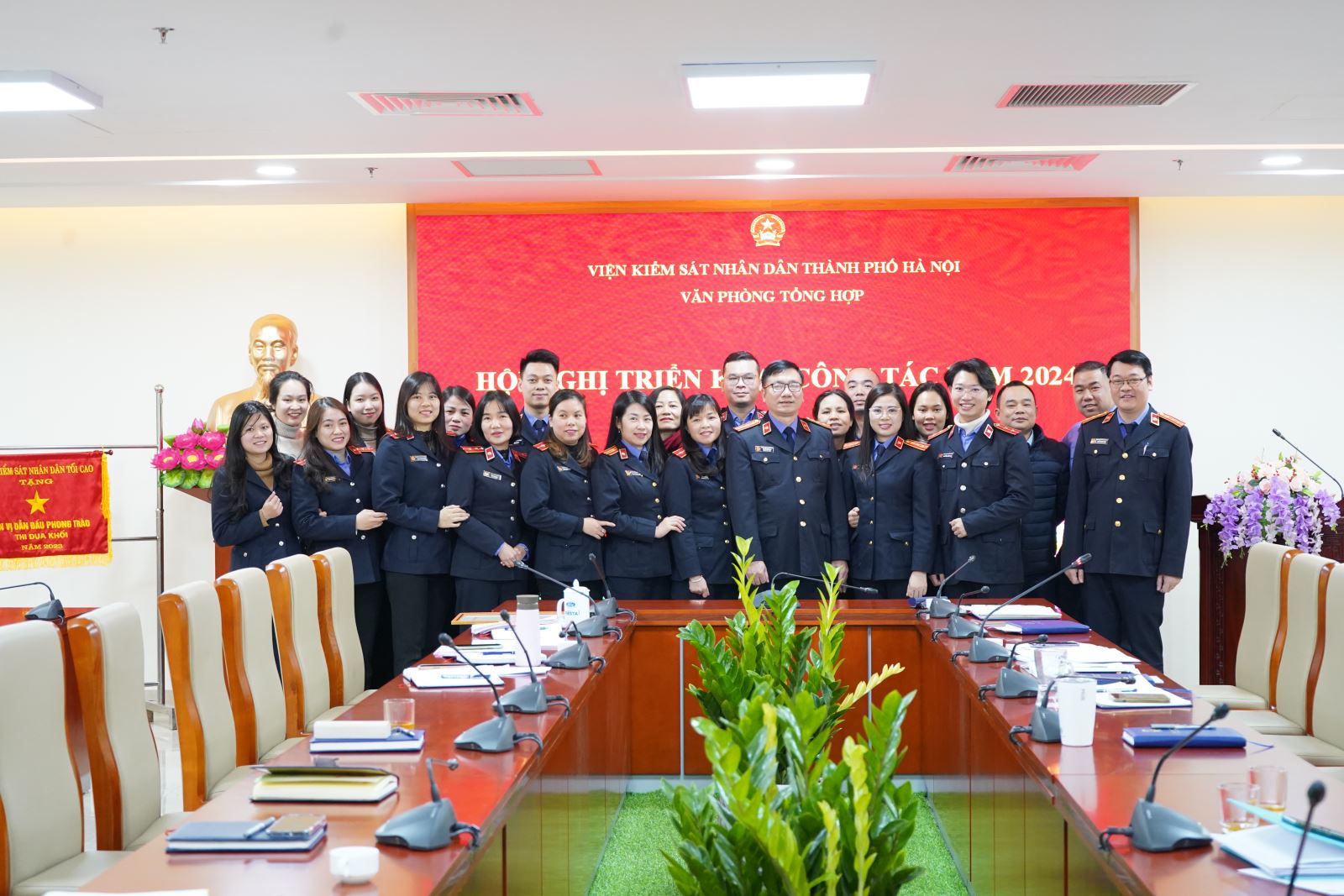 Ngày 23/01/2024, Văn phòng Viện KSND thành phố Hà Nội tổ chức Hội nghị triển khai công tác năm 2024. Chủ trì Hội nghị có đồng chí Nguyễn Văn Định - Chánh Văn phòng tổng hợp Viện KSND thành phố Hà Nội; tham dự Hội nghị có các đồng chí Phó Chánh Văn phòng tổng hợp: Đồng chí Lê Thị Thanh Bình, Nguyễn Trung Thành, Cao Thị Hồng và toàn thể công chức, người lao động Văn phòng Viện KSND thành phố Hà Nội.
