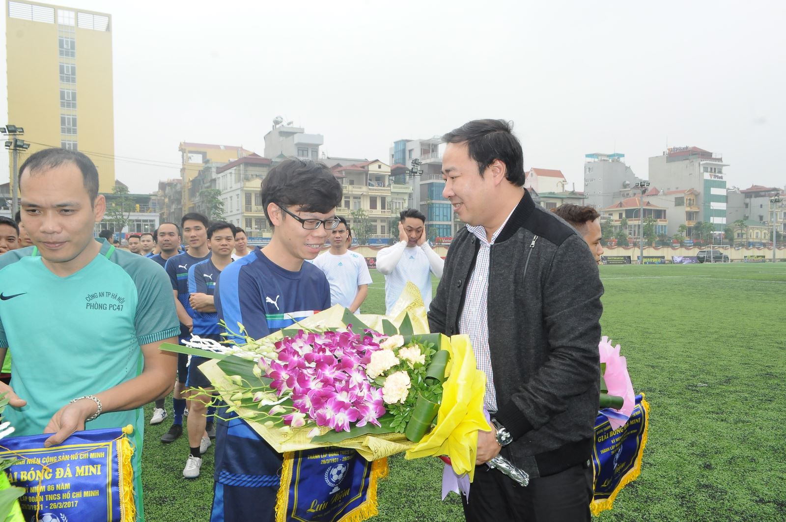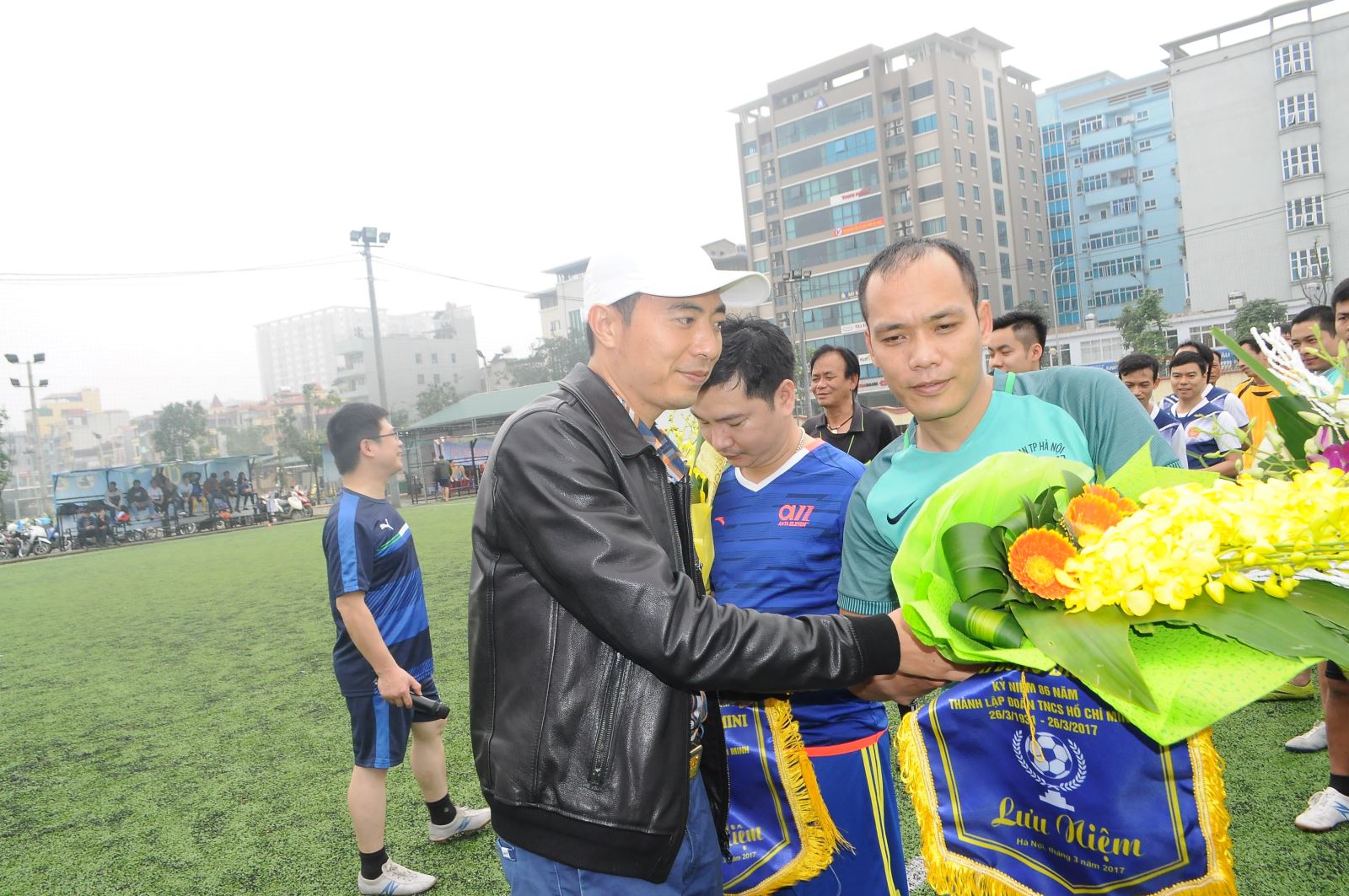 Lãnh đạo Viện KSND thành phố Hà Nội và Lãnh đạo Cục điều tra Viện KSND Tối cao tặng hoa và cờ lưu niệm cho hai đội bóng