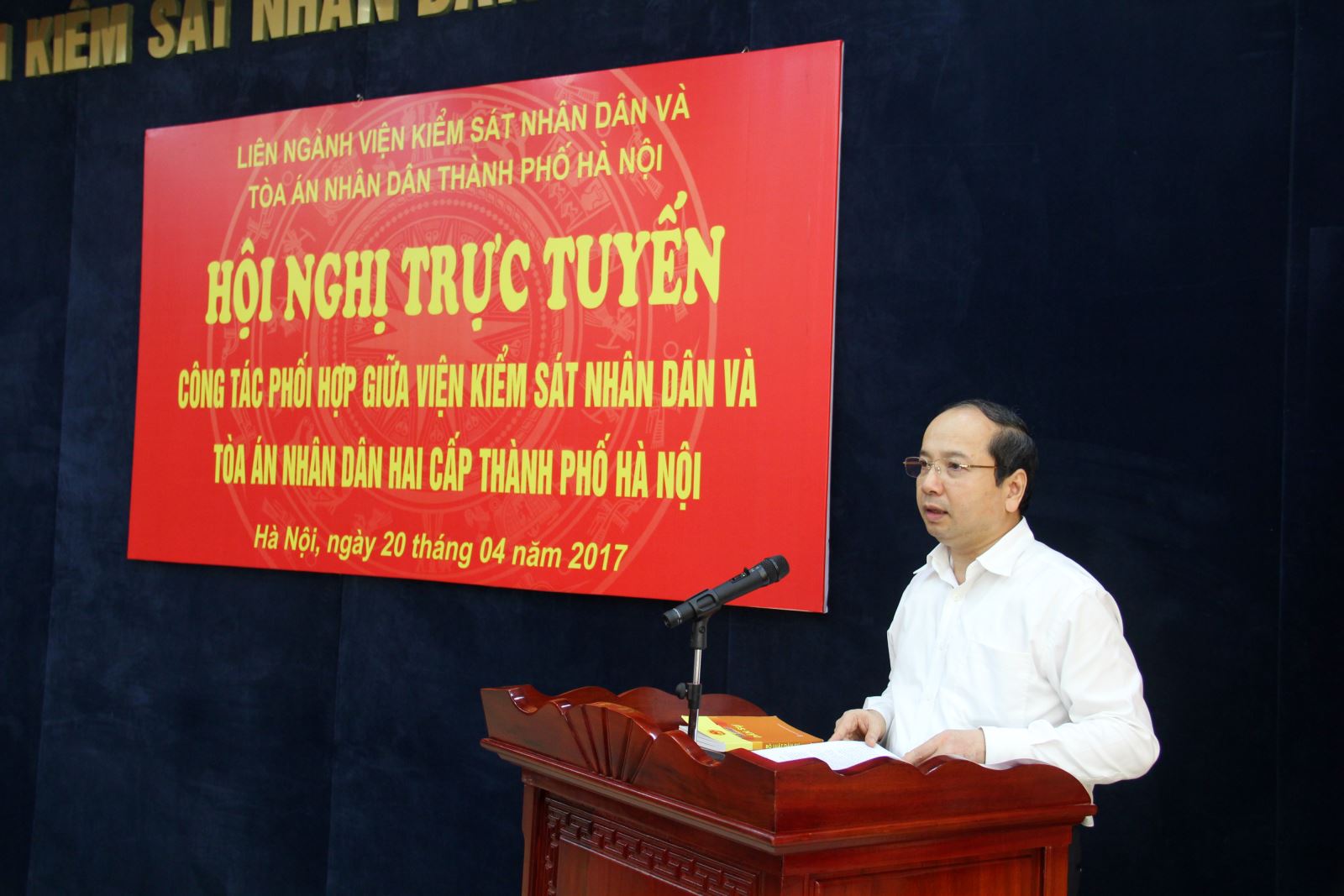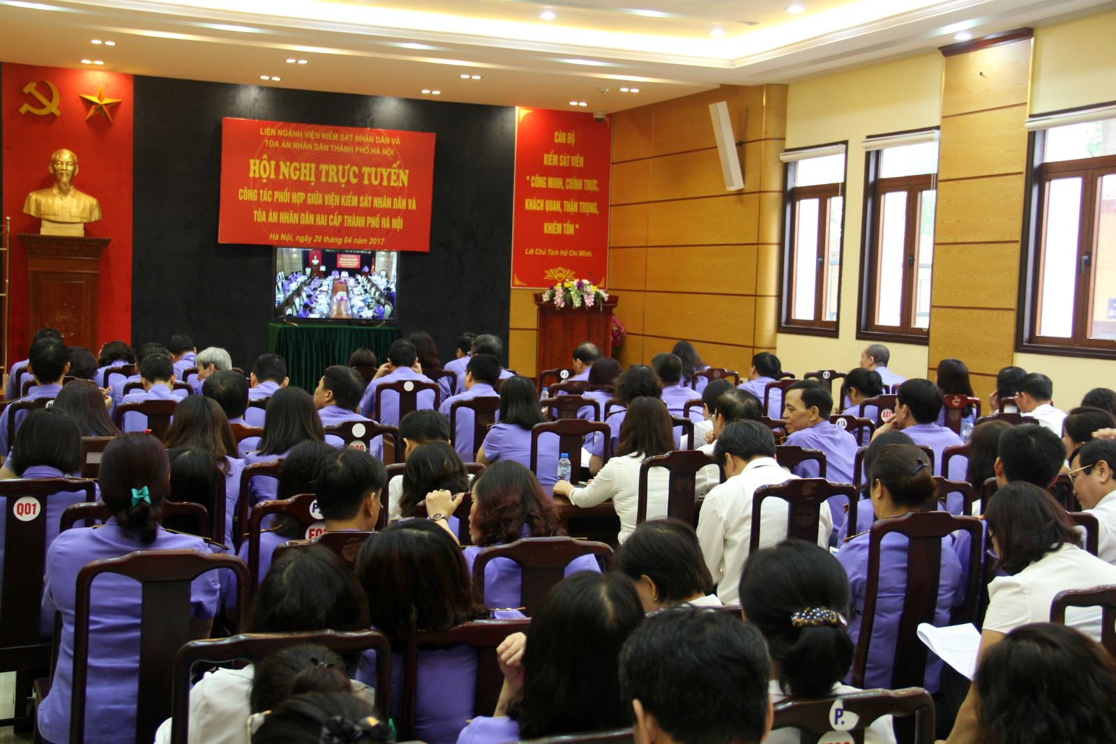 Sau hơn một tháng chuẩn bị công phu, kỹ lưỡng, sáng ngày 20/4/2017, hai ngành Kiểm sát - Tòa án thành phố Hà Nội đã phối hợp tổ chức Hội nghị trực tuyến sơ kết 3 năm thực hiện Quy chế phối hợp trong công tác giải quyết án và quản lý, chỉ đạo, điều hành tại 32 điểm cầu thành phố và quận huyện.