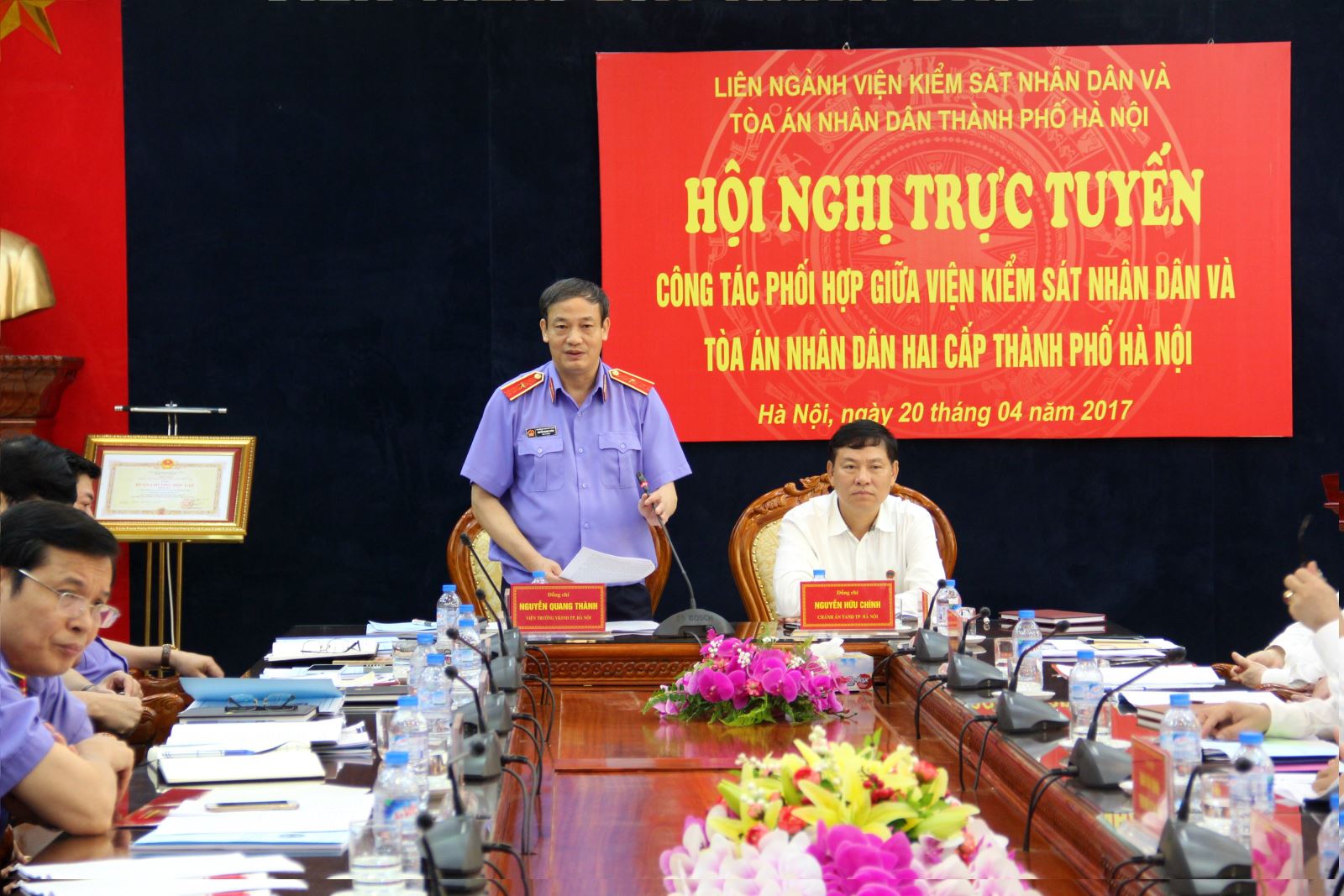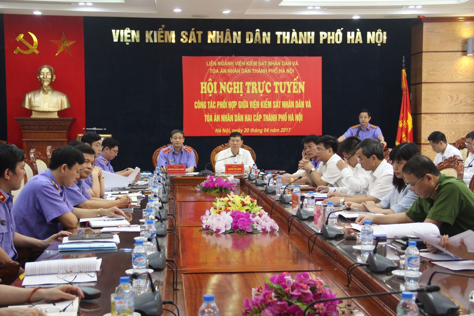 Đồng chí Nguyễn Quang Thành – Thành ủy viên, Viện trưởng Viện KSND thành phố Hà Nội và đồng chí Nguyễn Hữu Chính - Thành ủy viên-Đại biểu Quốc hội khóa XIV, Chánh án TAND thành phố Hà Nội đồng chủ trì hội nghị. Hội nghị đã đánh dấu 3 sự kiện đầu tiên mà hai ngành đạt được, đó là: Hội nghị trực tuyến đầu tiên của hai ngành Kiểm sát - Tòa án thành phố; Hội nghị đầu tiên với sự tham gia đông nhất từ trước đến nay của gần 1.500 Lãnh đạo, Kiểm sát viên, Thẩm phán, công chức của hai cấp Kiểm sát - Tòa án thành phố; và là Hội nghị đầu tiên đánh giá kết quả phối hợp trong toàn bộ các lĩnh vực công tác giữa hai ngành Kiểm sát - Tòa án sau hơn 3 năm ký Quy chế phối hợp.