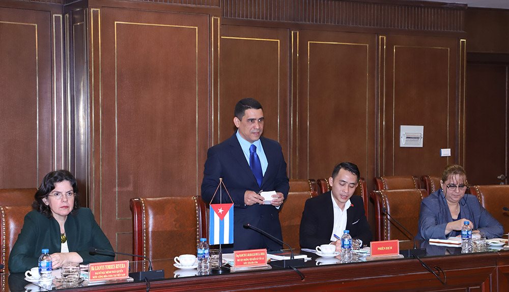 Ông Marcos Caraballo de la Rosa, Phó Viện trưởng Viện kiểm sát tối cao Cuba phát biểu tại buổi Tọa đàm