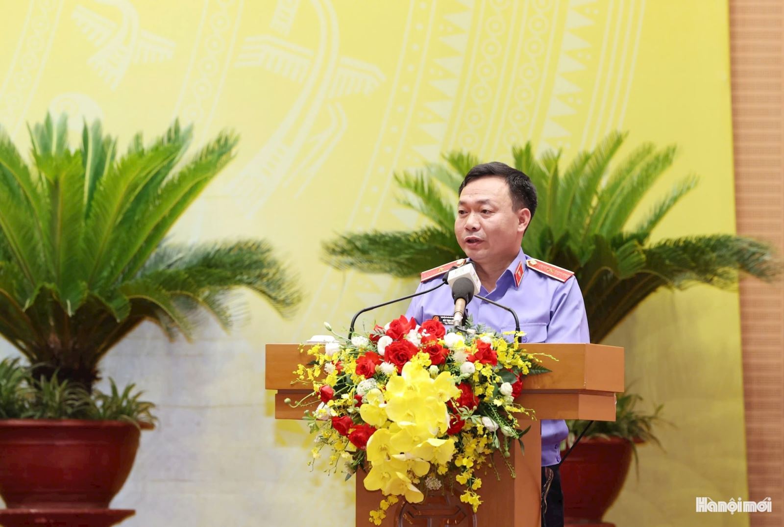 Viện trưởng Viện Kiểm sát nhân dân thành phố Hà Nội Đào Thịnh Cường báo cáo tại kỳ họp.