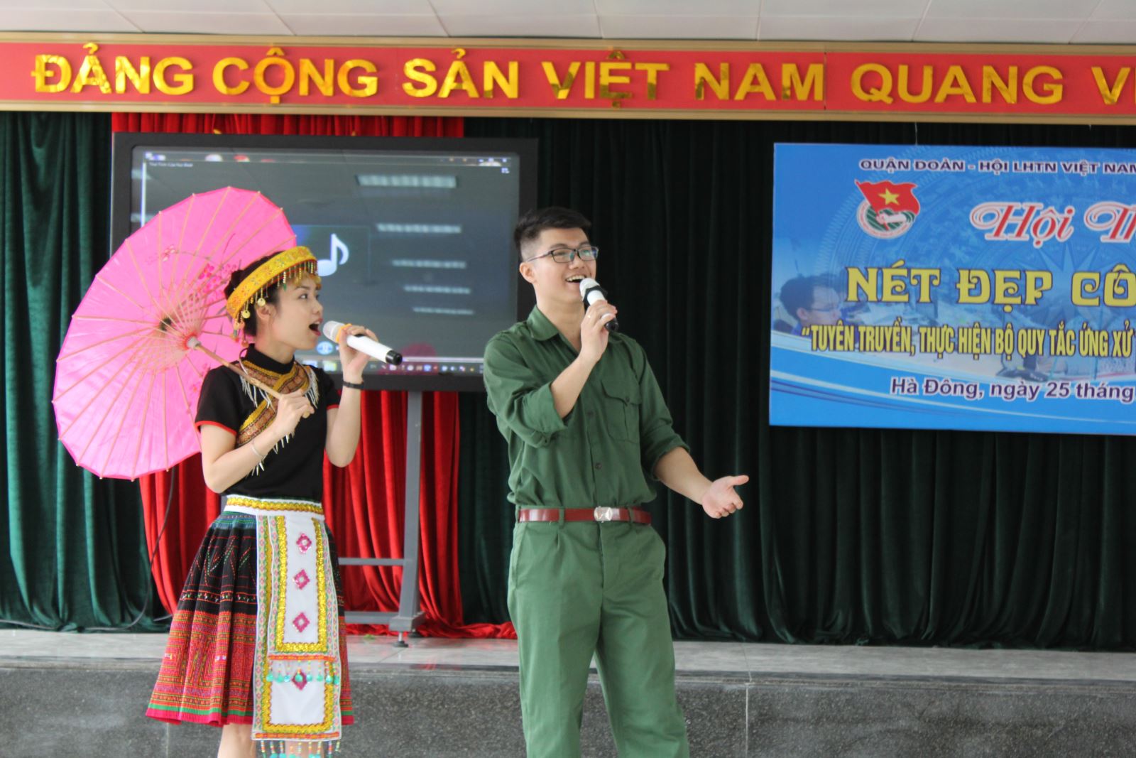 Tiếp tục trong chuỗi hoạt động đó, sáng ngày 25/3/2018, tại Hội trường Trường Trung học phổ thông chuyên Nguyễn Huệ, quận Hà Đông đã diễn ra Hội thi “Nét đẹp công sở” năm 2018 do Quận đoàn Hà Đông tổ chức với sự tham gia của 10 đội thi. Đối tượng tham gia dự thi là đoàn viên, thanh niên công tác tại các đơn vị khối cơ quan doanh nghiệp trên địa bàn quận Hà Đông.