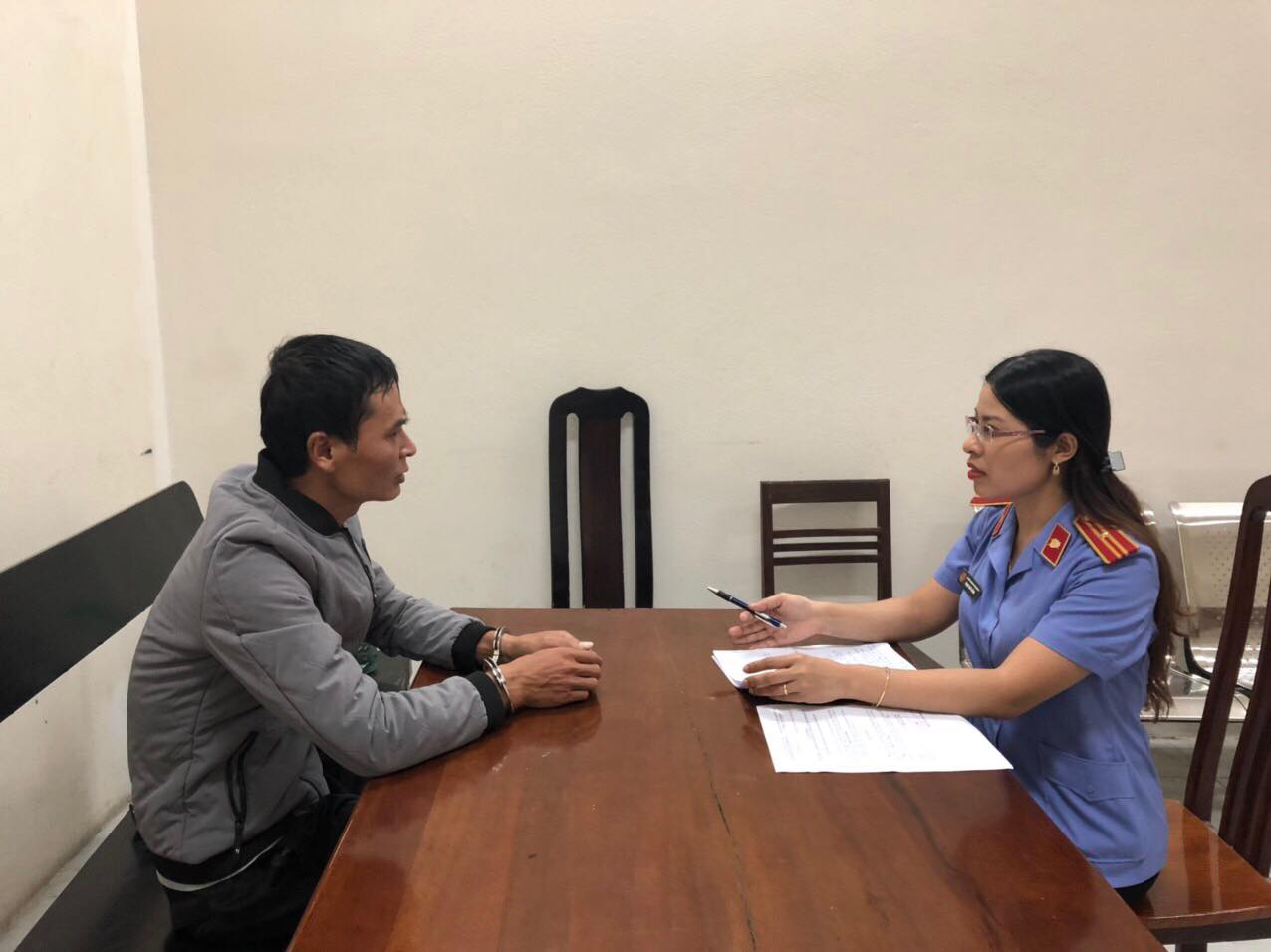 Kiểm sát viên tiến hành lấy lời khai đối tượng Nguyễn Xuân Trung và Nguyễn Văn Quân