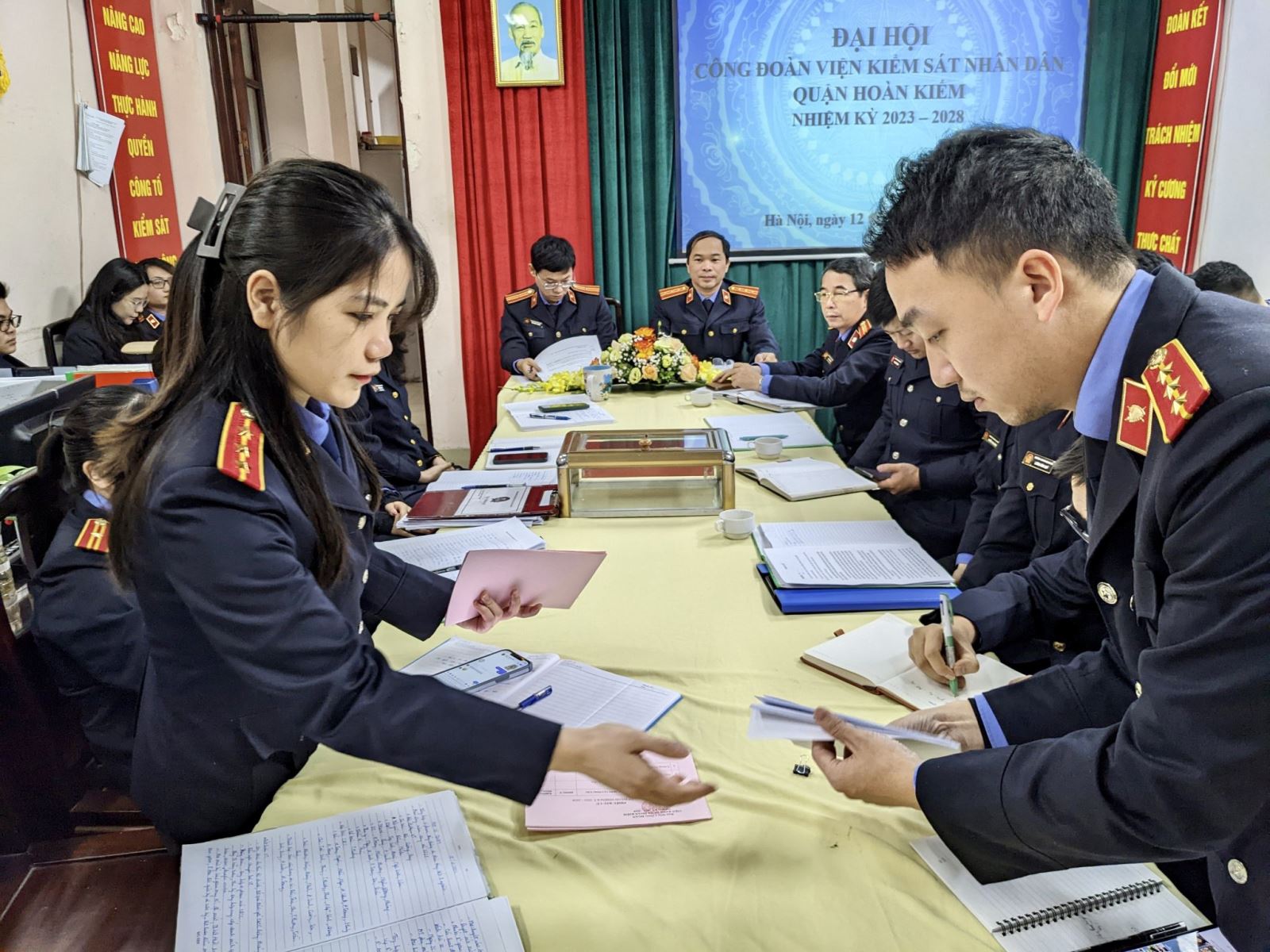 Sau một thời gian làm việc khẩn trương, Đại hội đã bầu ra 03 đồng chí tham gia Ban Chấp hành Công đoàn khóa mới gồm các đồng chí sau: đồng chí Đỗ Kiến Trúc - Phó Viện trưởng Viện KSND quận Hoàn Kiếm; đồng chí Mai Thùy Linh - Kiểm sát viên; đồng chí Lương Đình Quý - Kiểm sát viên.