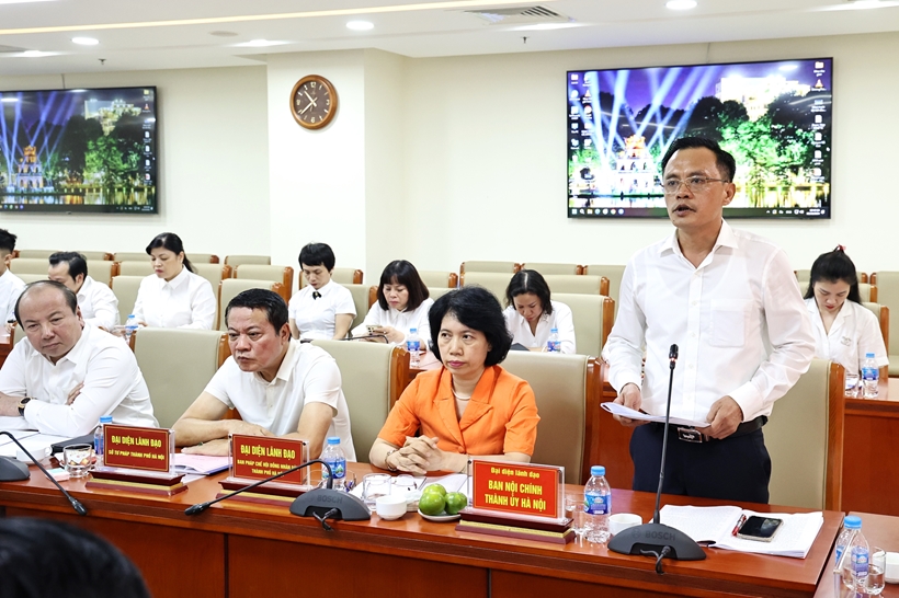 Đồng chí Phí Minh Hải - Phó Trưởng Ban Nội chính Thành ủy Hà Nội phát biểu tại Hội nghị
