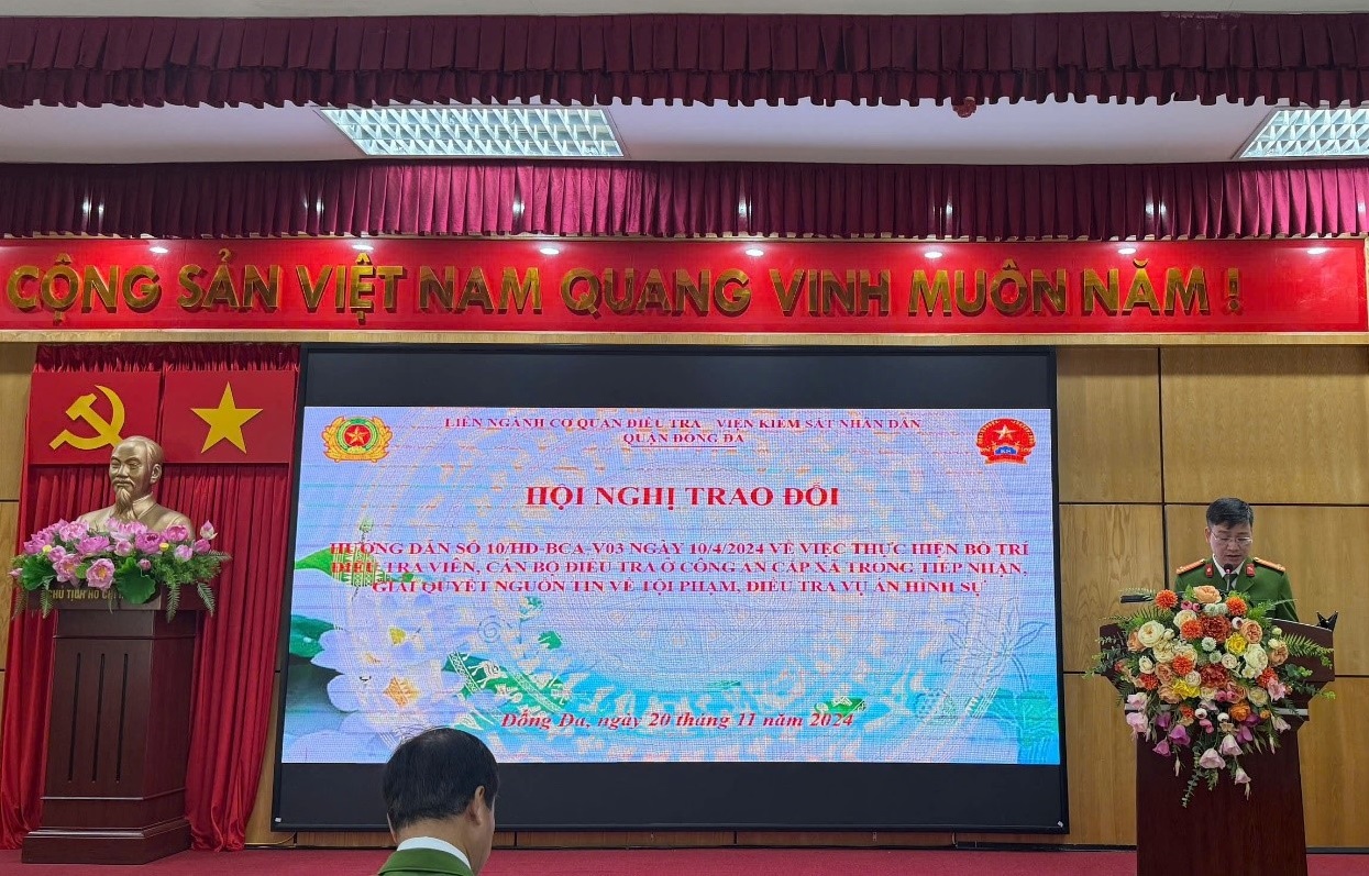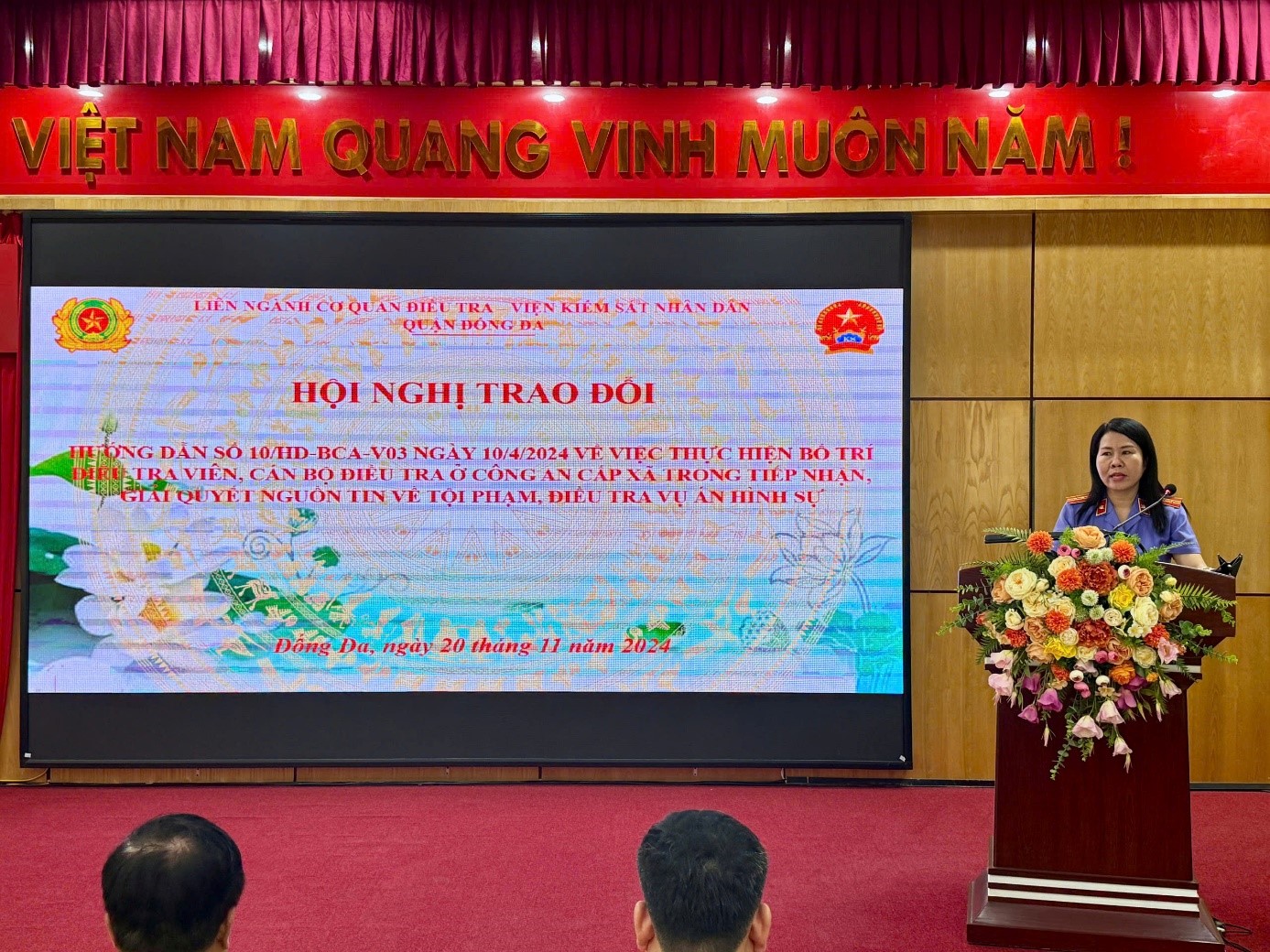 Thực hiện Kế hoạch về công tác của ngành kiểm sát Hà Nội năm 2024 và Kế hoạch của Viện KSND quận Đống Đa về công tác kiểm sát tiếp nhận, giải quyết nguồn tin về tội phạm và kiến nghị khởi tố. Ngày 20/11/2024, Viện KSND quận Đống Đa phối hợp cùng với Cơ quan CSĐT – Công an quận Đống Đa tổ chức Hội nghị trao đổi, hướng dẫn những khó khăn, vướng mắc trong công tác giải quyết nguồn tin về tội phạm của Điều tra viên ở Công an cấp phường, đồn trên địa bàn quận Đống Đa theo Hướng dẫn số 10/HD-BCA0V03 ngày 10/4/2024 của Bộ Công an.