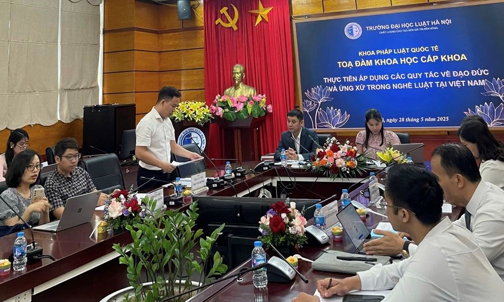 Sáng ngày 28/05/2025, Câu lạc bộ Kiểm sát viên trẻ - Viện KSND quận Đống Đa đã tham gia Tọa đàm khoa học cấp Khoa “Thực tiễn áp dụng các quy tắc về đạo đức và ứng xử trong nghề luật tại Việt Nam” do Khoa Pháp luật quốc tế, Trường Đại học Luật Hà Nội tổ chức. Tọa đàm được chủ trì bởi TS. Trần Minh Ngọc – Trưởng Khoa pháp luật quốc tế và TS. Nguyễn Thị Anh Thơ – Phó trưởng Khoa Pháp luật quốc tế, Phụ trách Bộ môn pháp luật về giải quyết tranh chấp thương mại quốc tế.