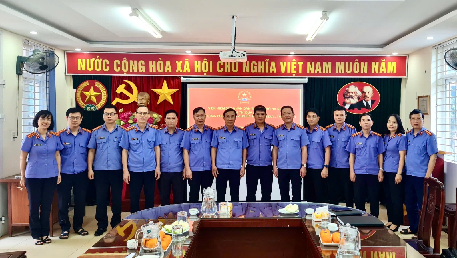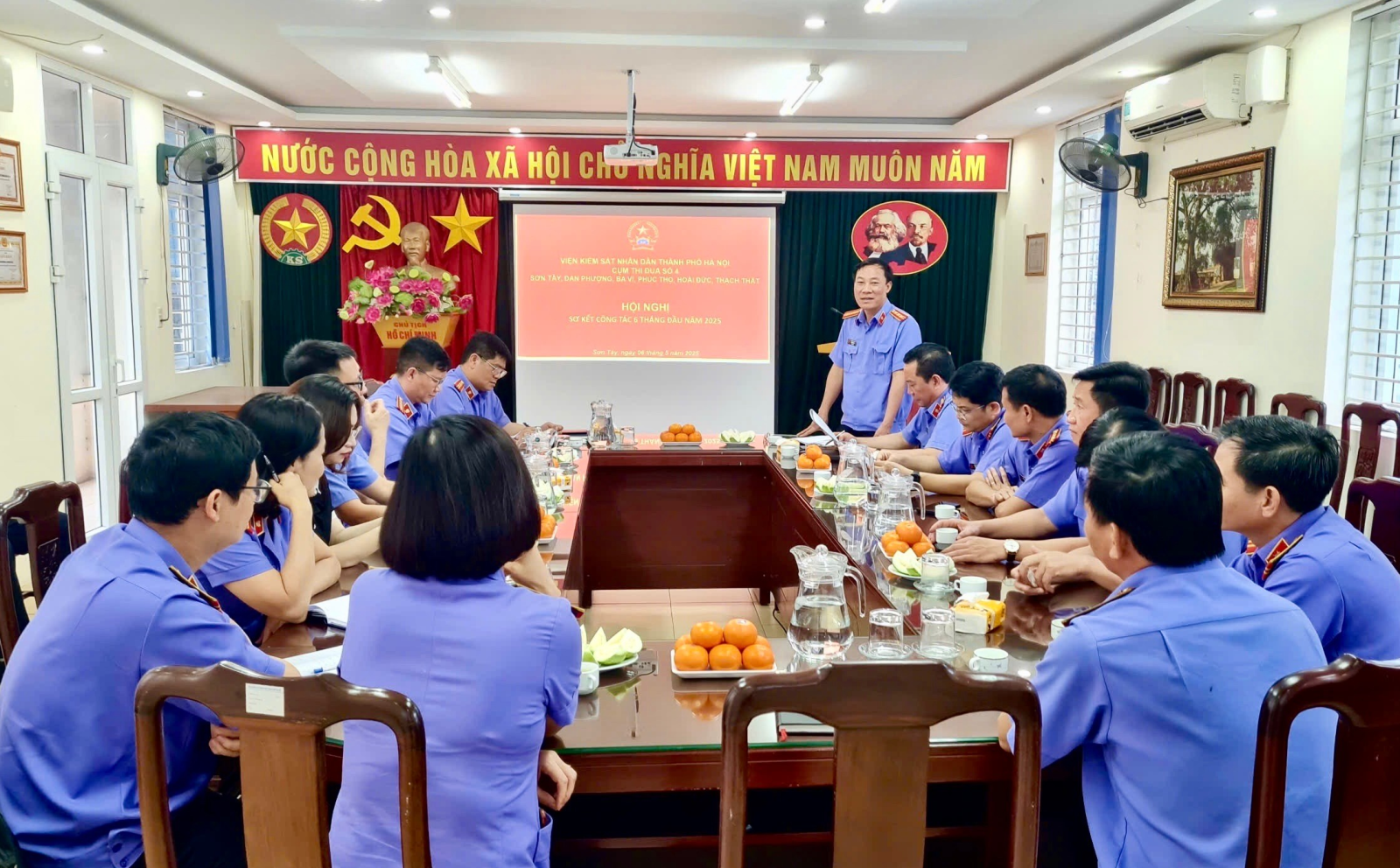 Căn cứ Quyết định số 53/QĐ-VKS-TĐKT ngày 23/01/2025 của Viện KSND thành phố Hà Nội năm 2025, Kế hoạch số 03/VKS-TĐKT ngày 24/12/2024 của Hội đồng Thi đua - Khen thưởng thành phố Hà Nội về công tác thi đua, khen thưởng của ngành Kiểm sát Hà Nội năm 2025. Ngày 06/5/2025, tại trụ sở Viện KSND thị xã Sơn Tây, Cụm thi đua số 4 - Viện KSND thành phố Hà Nội gồm các đơn vị: Sơn Tây, Hoài Đức, Đan Phượng, Thạch Thất, Phúc Thọ, Ba Vì tổ chức Hội nghị sơ kết công tác thi đua, khen thưởng 06 tháng đầu năm 2025.