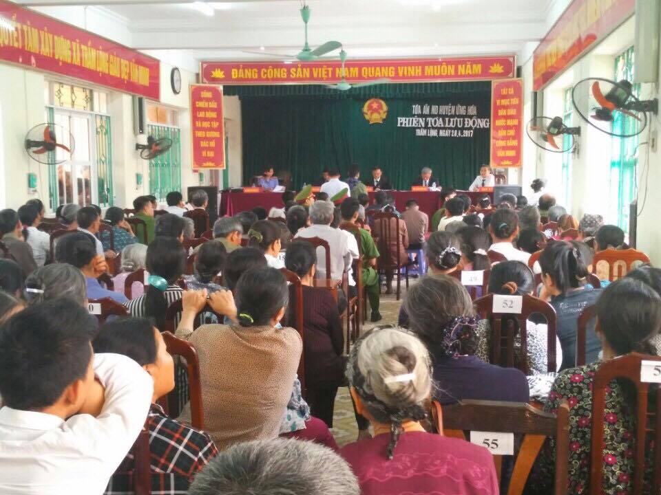 Ngày 28/4/2017, tại trụ sở Hội trường UBND xã Trầm Lộng, huyện Ứng Hòa, TP Hà Nội, Viện KSND huyện Ứng Hòa phối hợp với TAND huyện đã mở phiên tòa xét xử lưu động đối với 05 vụ án hình sự về tội: “Mua bán trái phép chất ma túy”; “Tàng trữ trái phép chất ma túy”; “Trộm cắp tài sản” và “Tiêu thụ tài sản do người khác phạm tội mà có”.