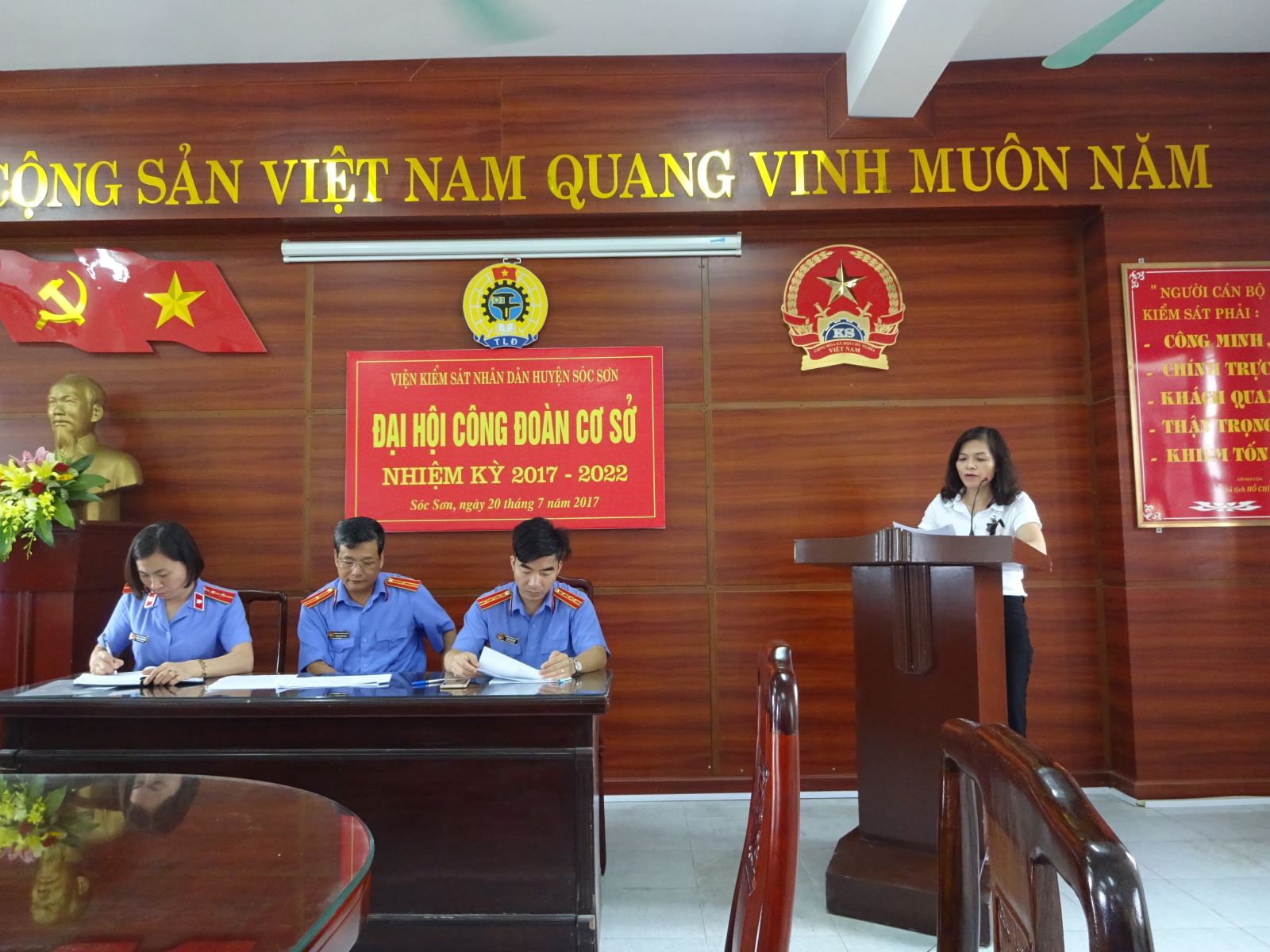 Sáng ngày 20/7/2017, VKSND huyện Sóc Sơn đã tổ chức thành công Đại hội Công đoàn lần thứ IX (nhiệm kỳ 2017-2022). Đến dự và chỉ đạo tại Đại hội có đồng chí Đỗ Thị Hương - Phó chủ tịch Liên đoàn Lao động huyện Sóc Sơn và sự tham gia của toàn thể các đồng chí Lãnh đạo, Kiểm sát viên, cán bộ là Đoàn viên Công đoàn VKSND huyện Sóc Sơn.