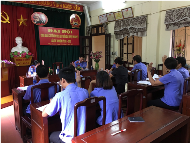 Đại hội đã bầu ra 03 đồng chí vào Ban chấp hành Công đoàn Viện KSND huyện Phú Xuyên nhiệm kỳ 2017 – 2022 gồm các đồng chí Nguyễn Thị Thu Hiền - Chủ tịch Công đoàn, Kiểm sát viên; đồng chí Phùng Thế Phương – Ủy viên; đồng chí Đỗ Thị Hoa – Ủy viên. Đại hội cũng đã bầu đồng chí Nguyễn Thị Thu Hiền là đại biểu chính thức đi dự Đại hội đại biểu Liên đoàn Lao động huyện Phú Xuyên khóa X, nhiệm kỳ 2018 – 2023.